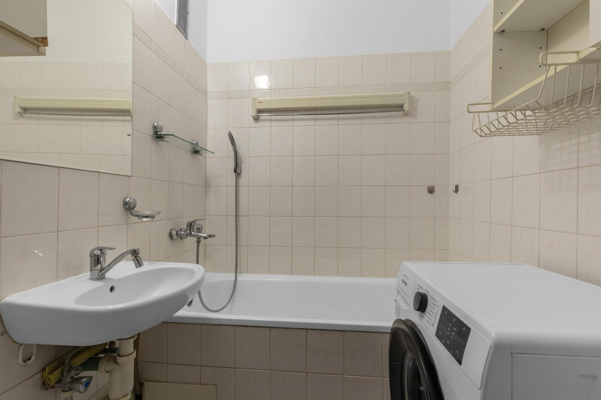 - kúpeľňa s umývadlom, vaňou a pračkou