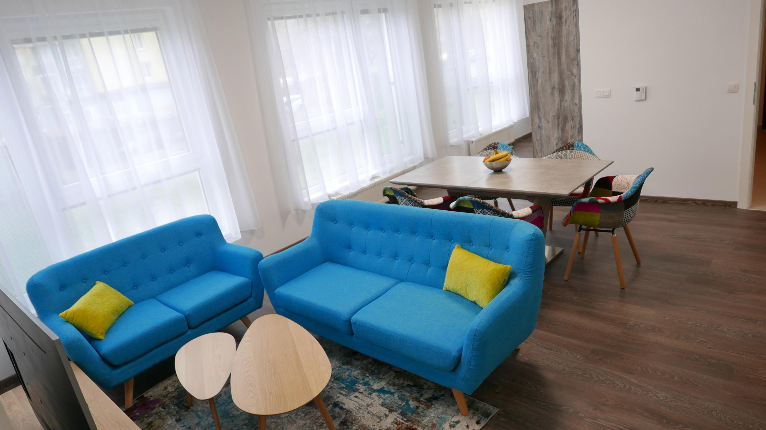 *2- izbový byt pozostáva z predsiene, samostatného WC, obývačky s kuchyňou, spálňe, šatníka, kúpeľňe s WC