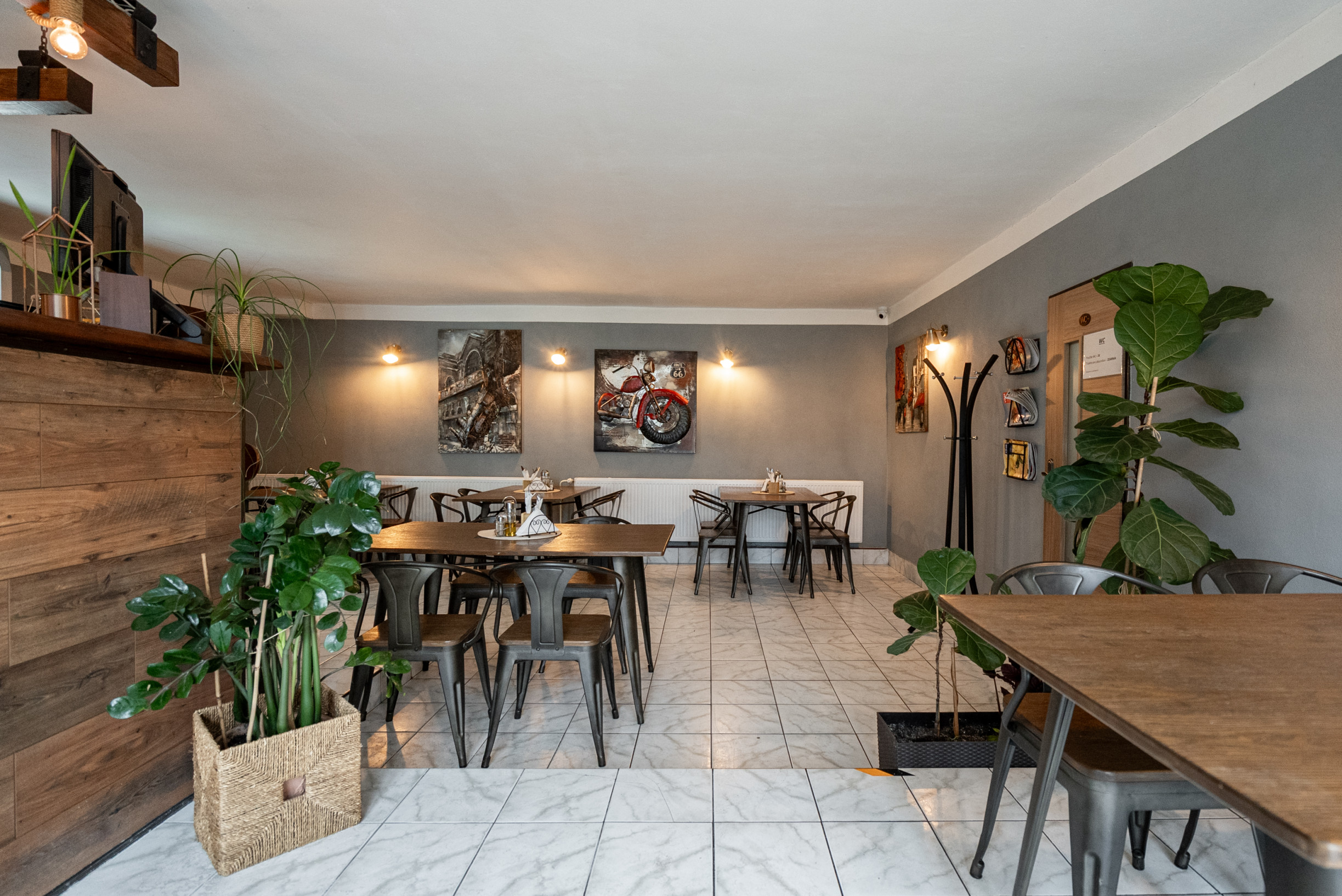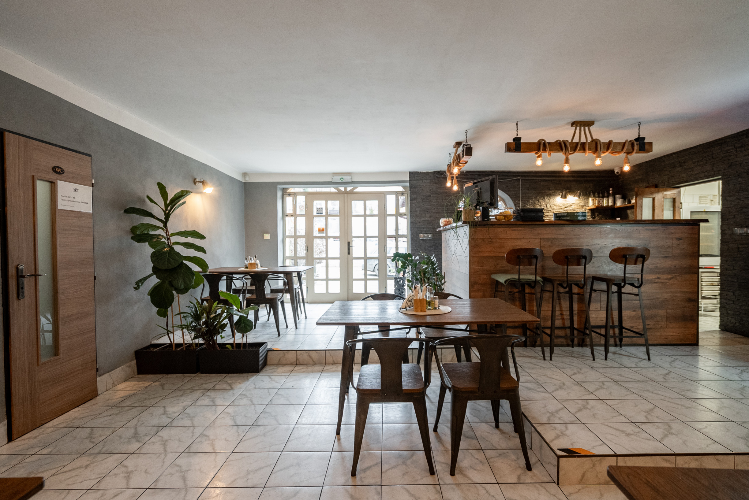 Prízemie pozostáva z vonkajšej terasy a vnútorného reštauračného priestoru s kapacitou približne 50 miest vrátane vonkajšieho sedenia. Hlavný bar na prízemí je plnohodnotne vybavený. Po ľavej strane sa nachádza prvá kuchynská časť, ktorá je technicky vybavená za plnohodnotnú prevádzku, kde sa pripravujú najmä jedlá ako burgre, hot-dogy, hranolky a podobne.