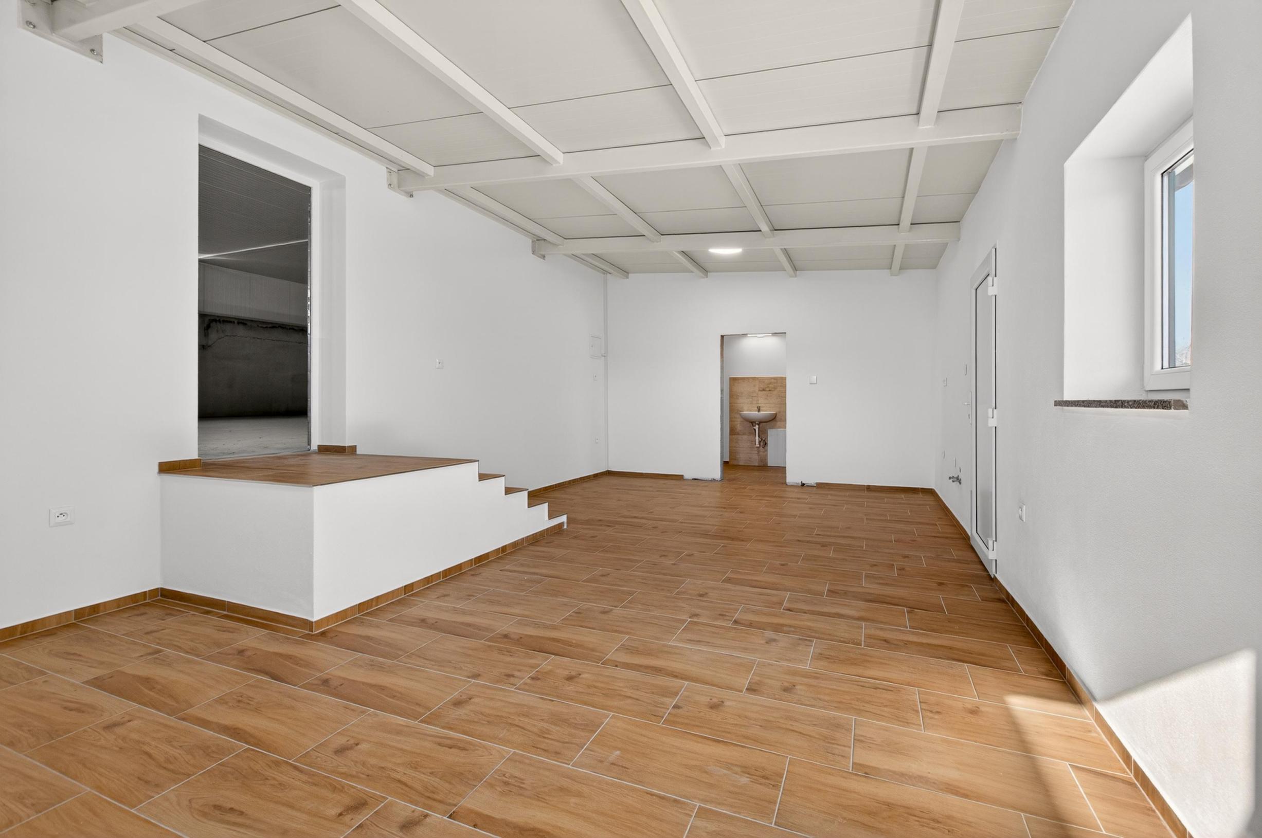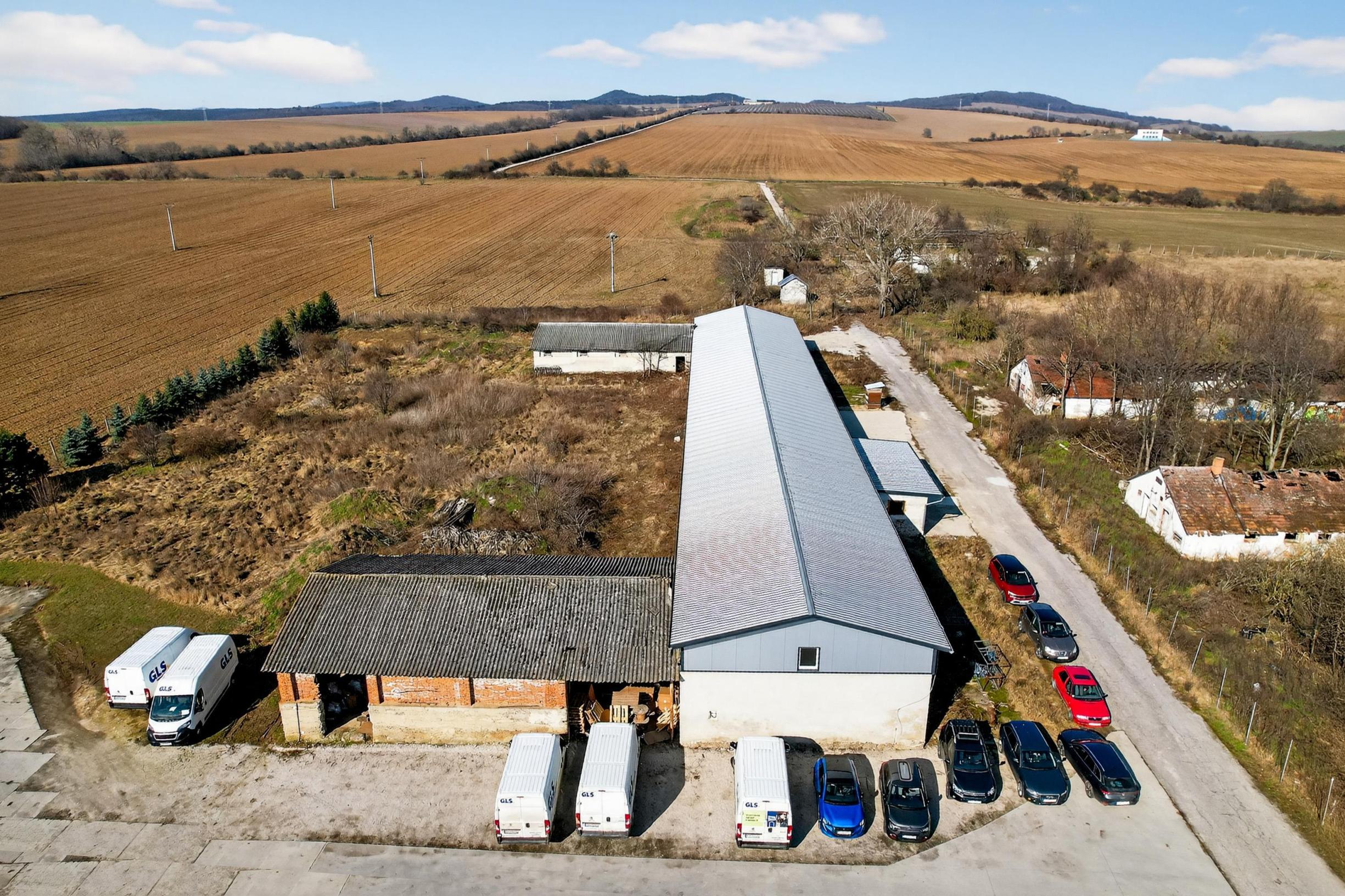 • Svetlá výška haly: 3,55 m (meraná od podlahy po spodnú hranu stropnej konštrukcie): vhodné na skladovanie, vhodné na menšiu výrobu,