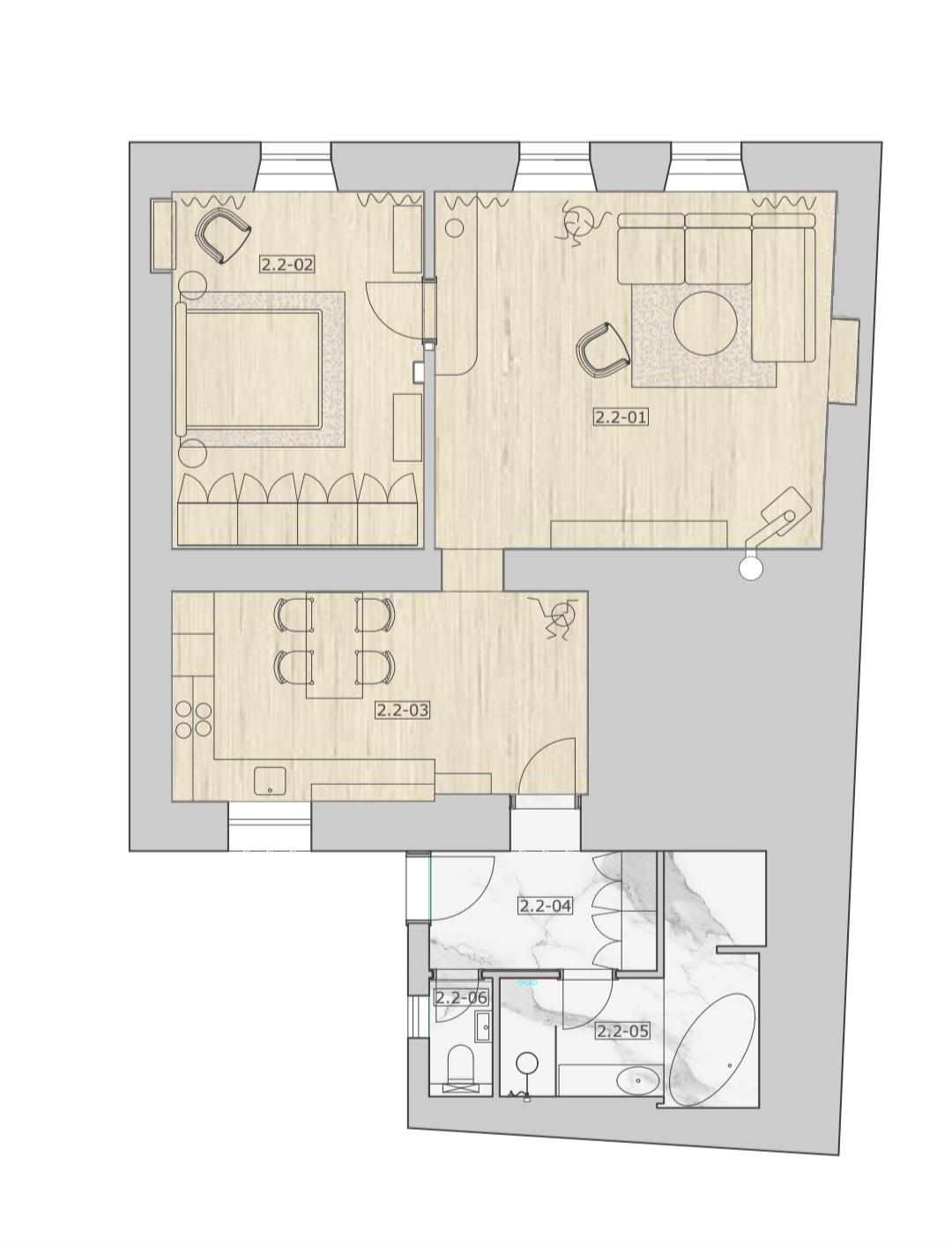 - 2 izb.