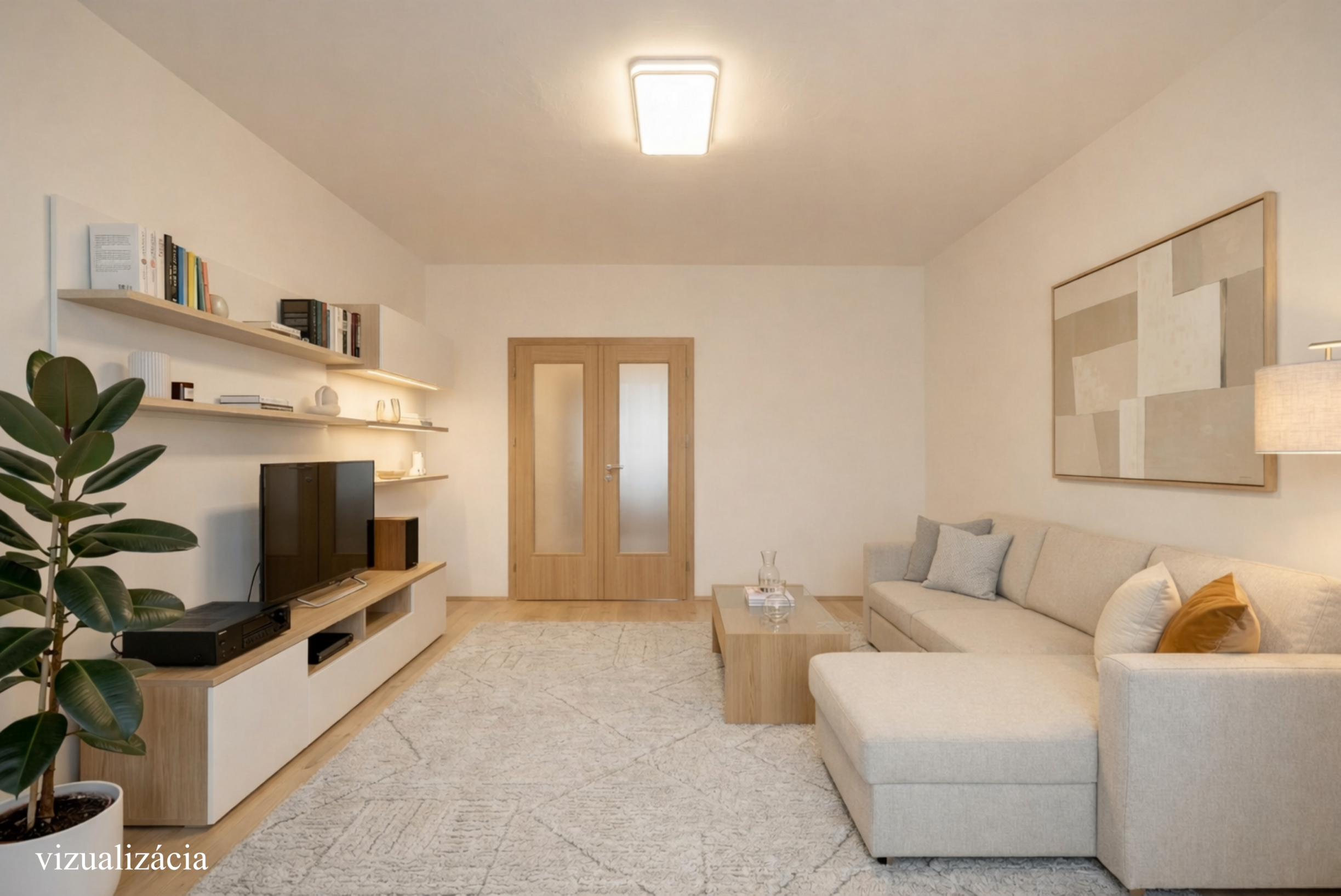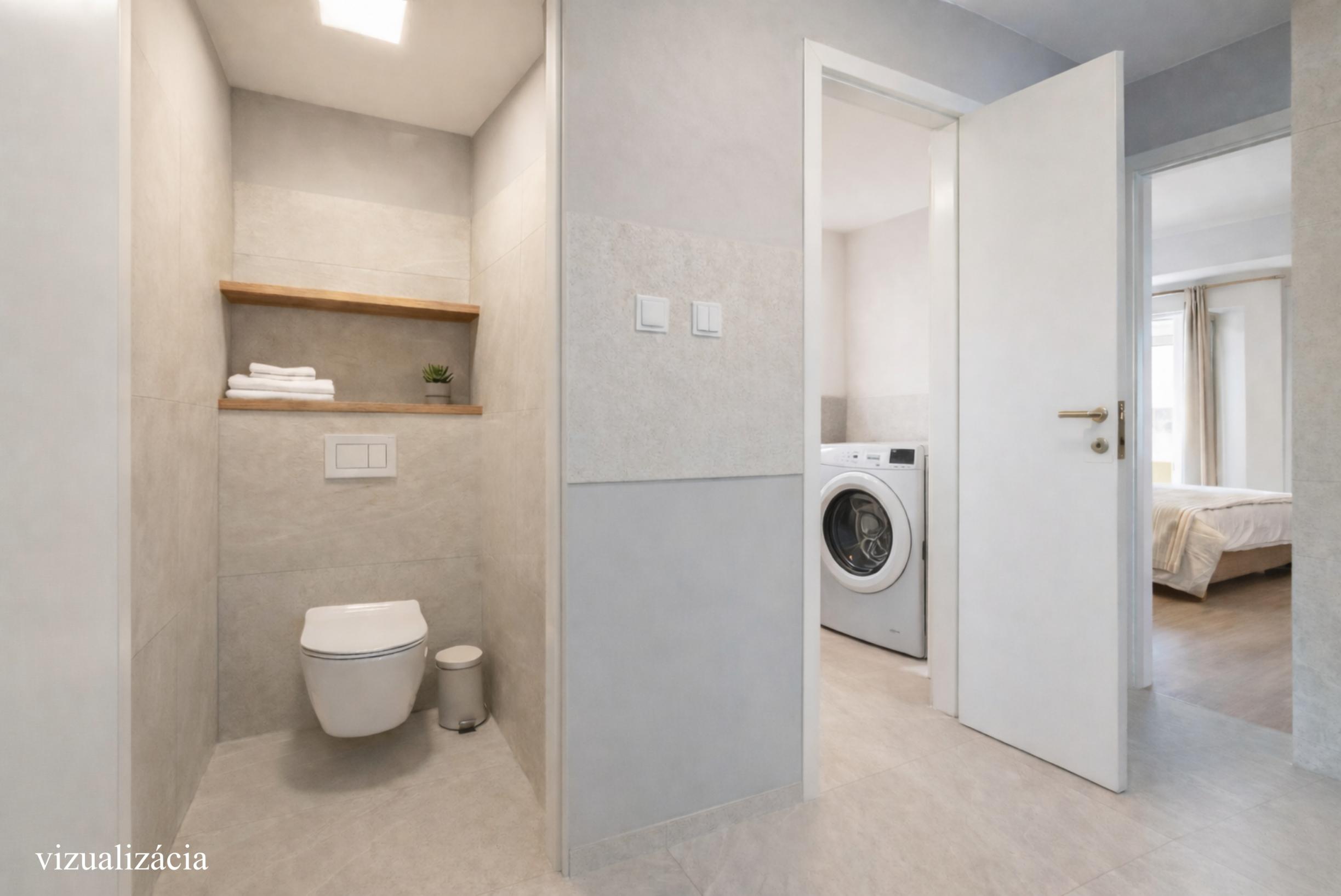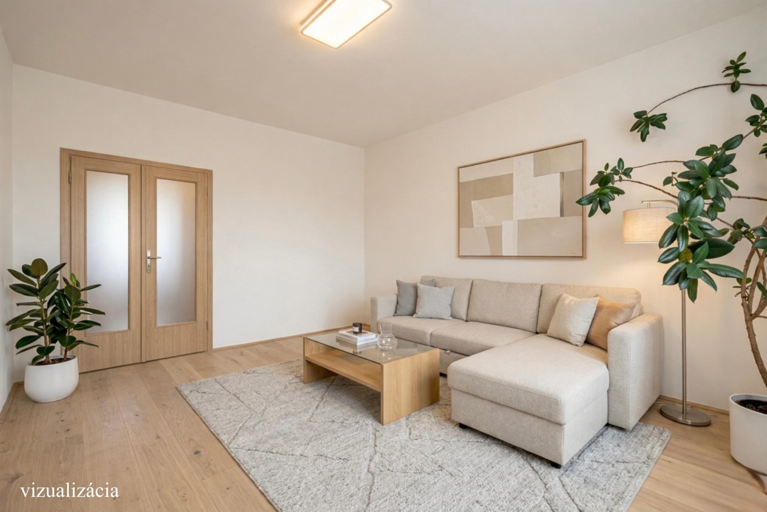 Súčasťou prezentácie sú aj vizualizácie možnej rekonštrukcie, ktoré ukazujú potenciál tohto bytu po modernizácii.