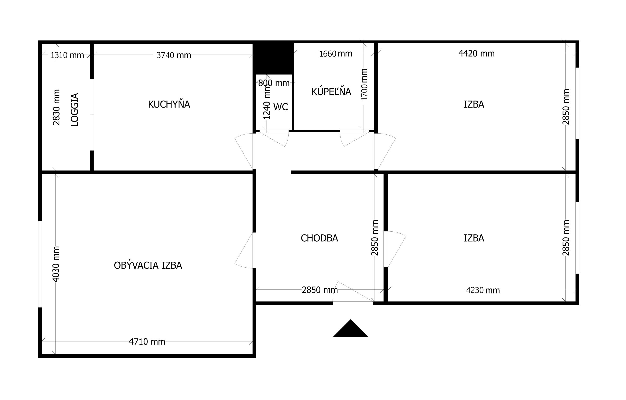 • Rozloha bytu: 69,78 m² vrátane pivnice