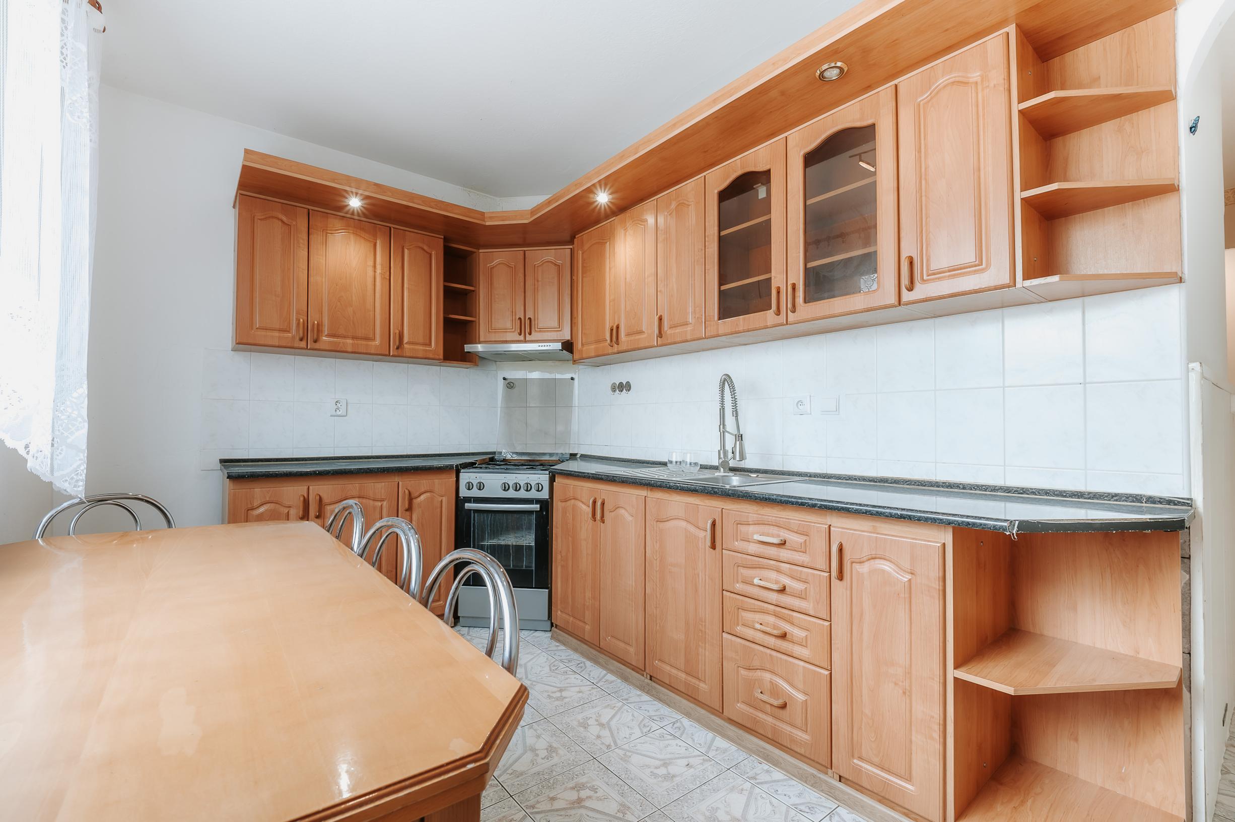 * v kuchyni je kuchynská linka, sporák, rúra