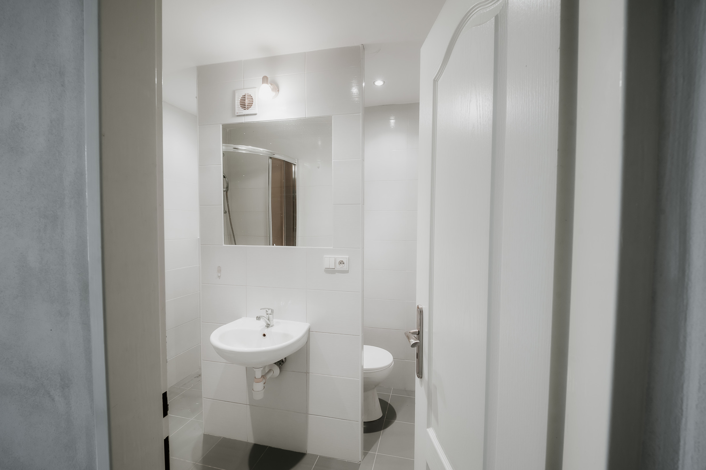 * pri vstupe do bytu je WC s kúpeľnou ktorá zahŕňa sprchovací kút a priestor na práčku