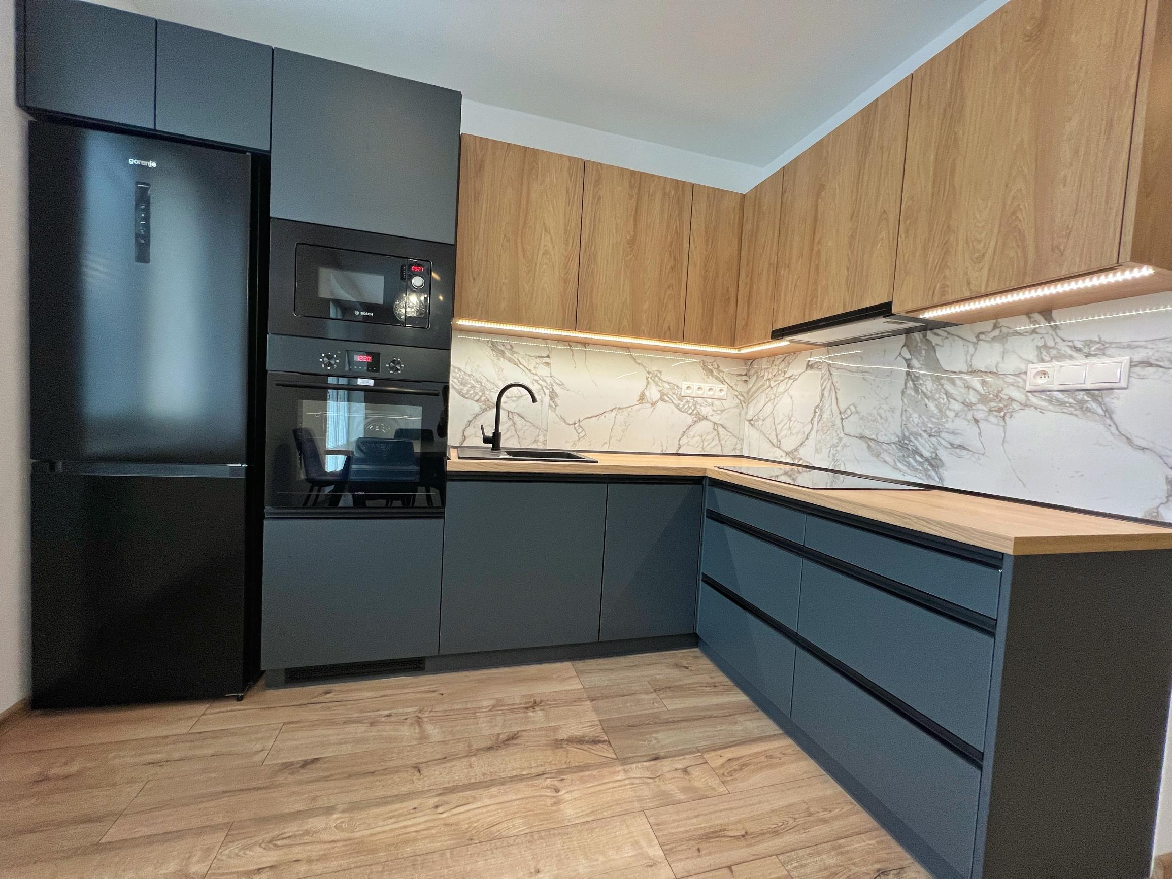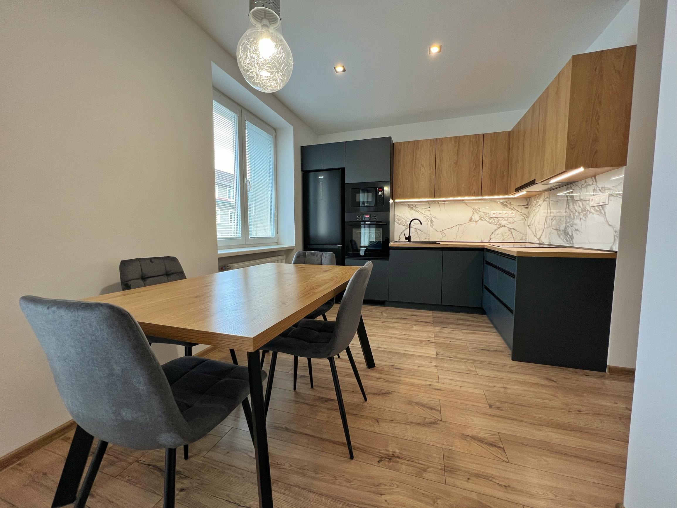 - moderná dispozícia bytu, v ktorom je obývačka prepojená s kuchyňou