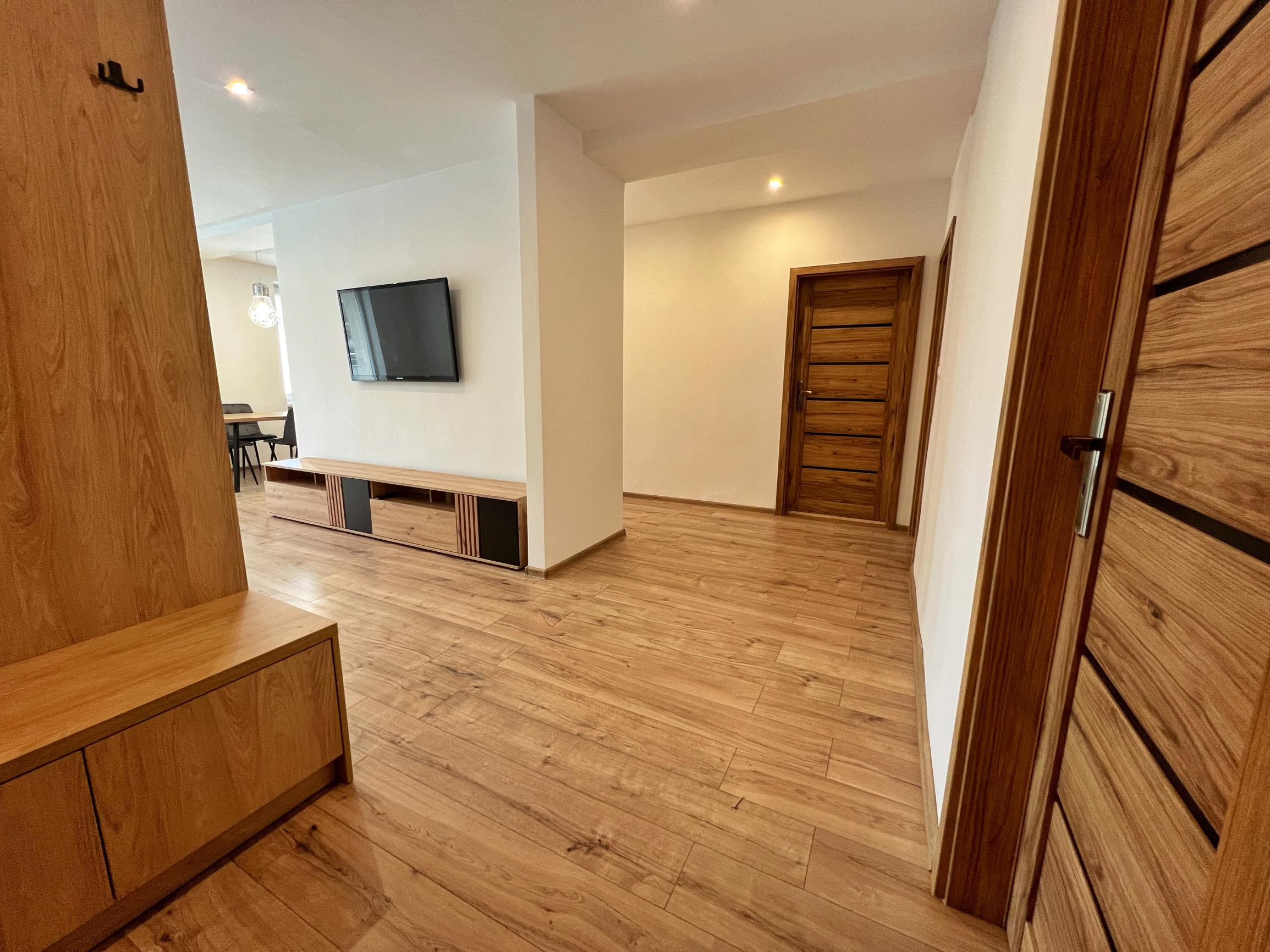 - zariadená obývacia izba s gaučom a televíznou stenou, jedálenský set na sedenie, kuchynská linka so spotrebičmi, dve kompletne zariadené spálne s pohodlnými manželskými posteľami a priestrannými skriňami, skrinka na topánky a kabáty v chodbe, práčka v kúpeľni a vstupné bezpečnostné dvere, klimatizácia v obývačke