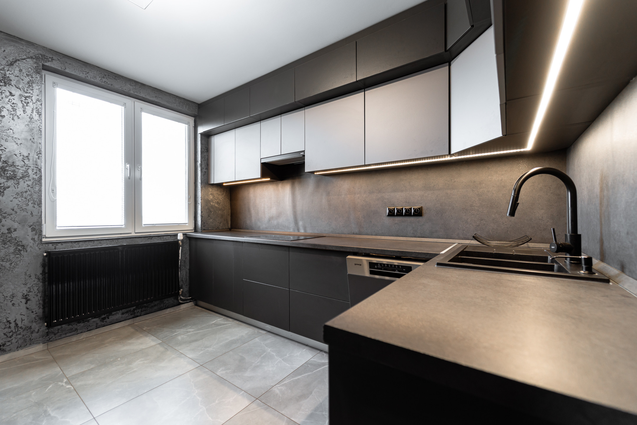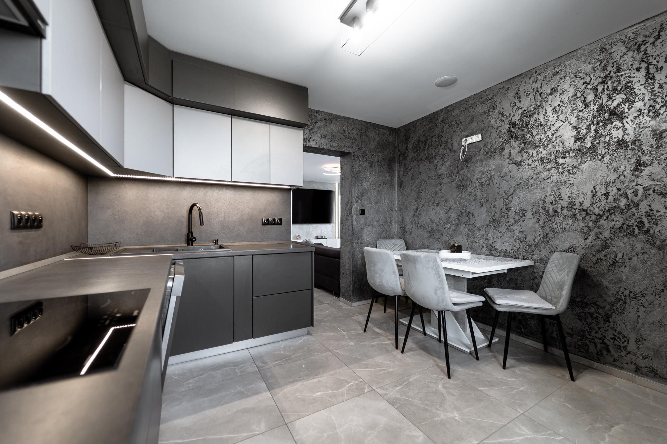 • kuchyňa vyrobená na mieru so zabudovanými spotrebičmi (chladnička, umývačka riadu, varná doska, digestor, rúra)