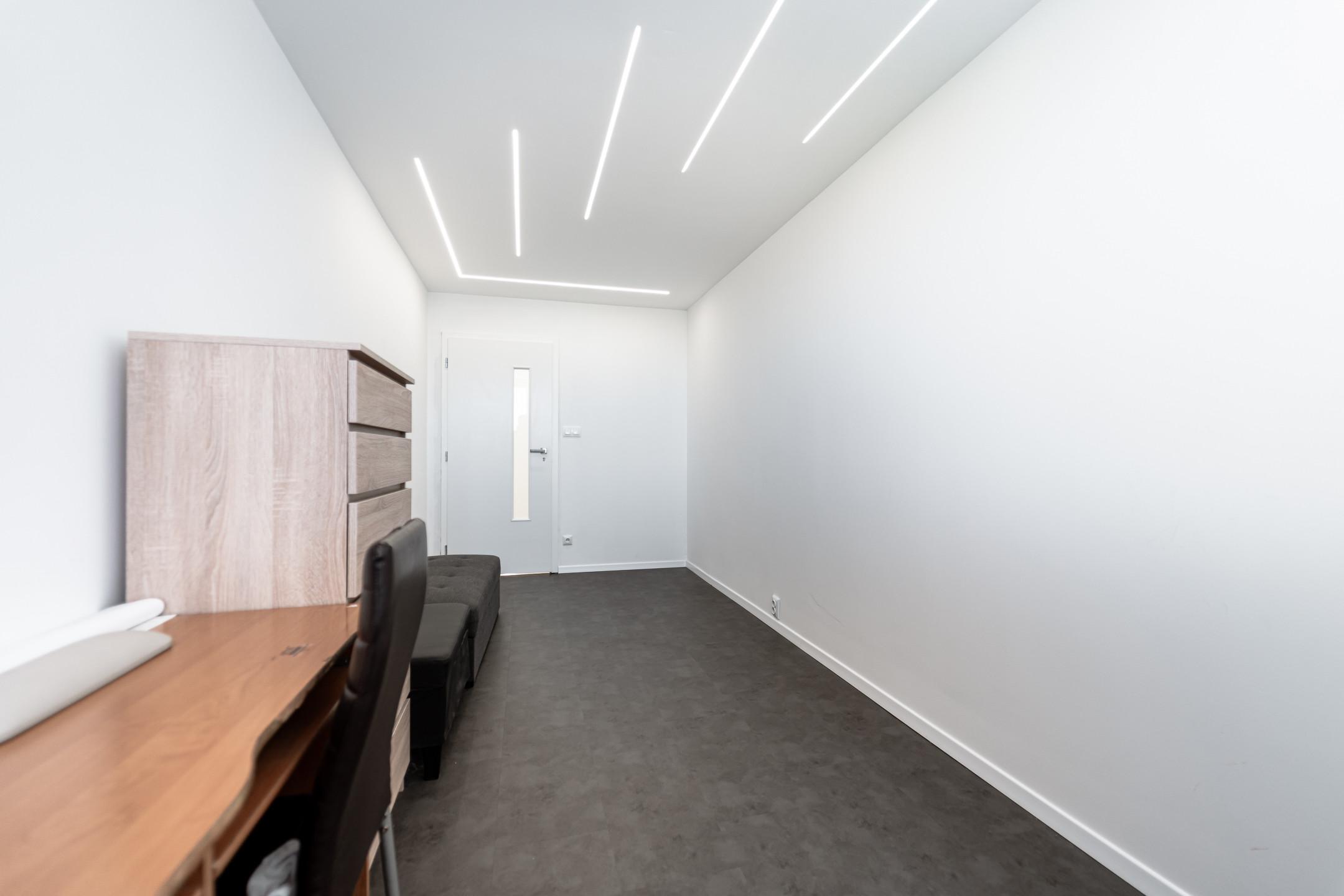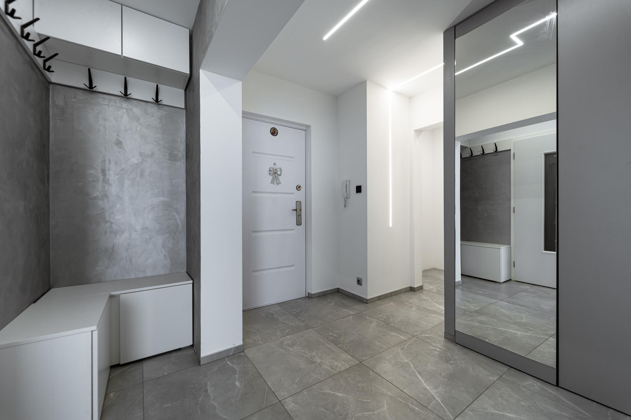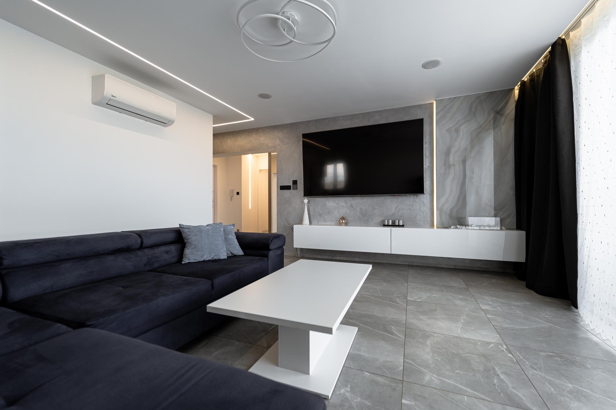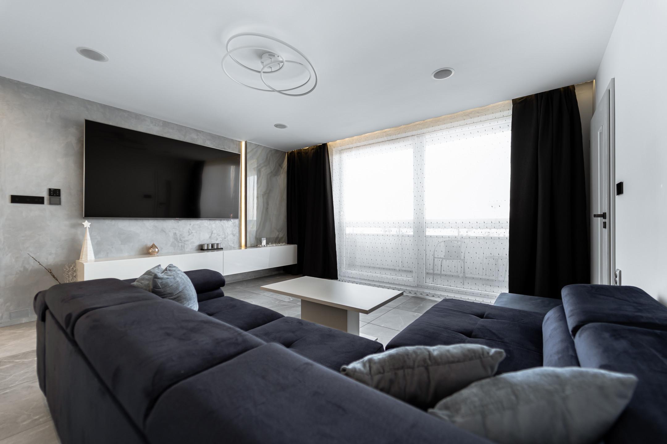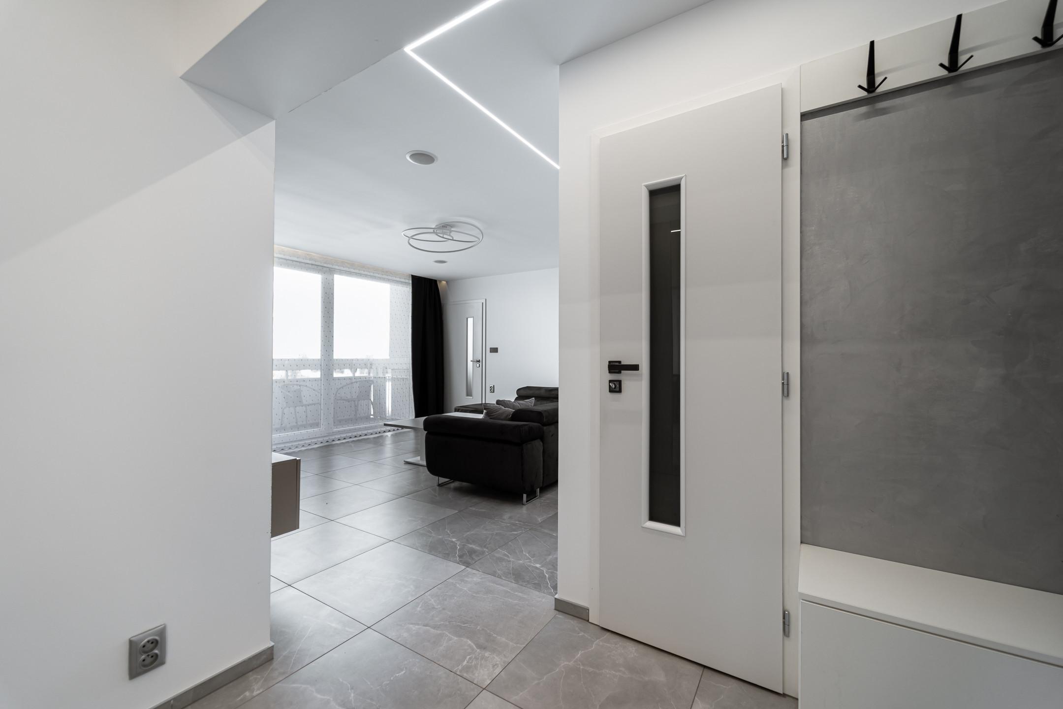 • vinylové podlahy v detských izbách, dlažba v ostatných izbách, bezpečnostné vchodové dvere, nové omietky, elektroinštalácia, podlahové kúrenie v obývačke a kúpeľni, klimatizácia, LIVOLO vypínače, polo inteligentný byt s možnosťou na finálne dokončenia na inteligentný byt