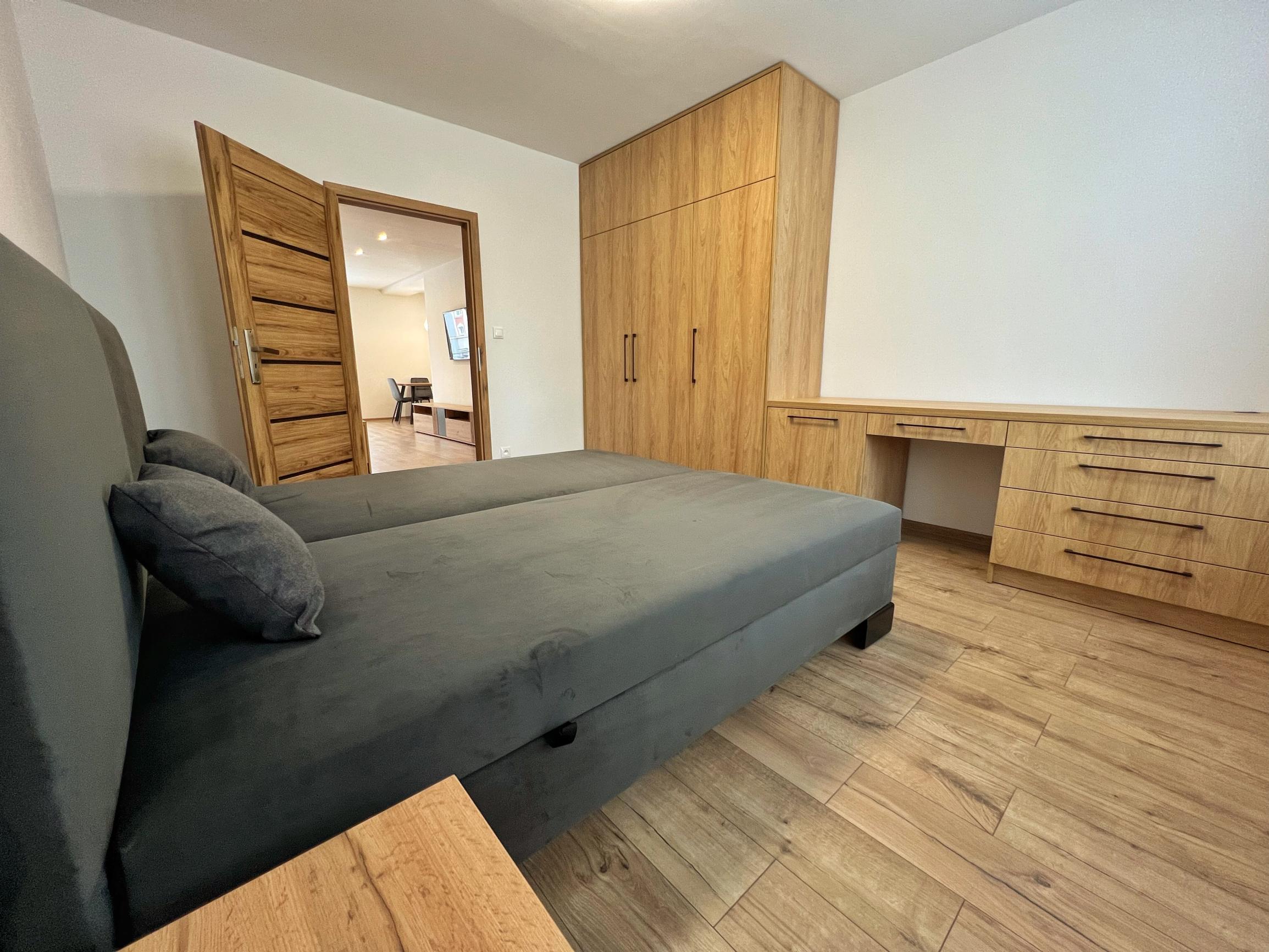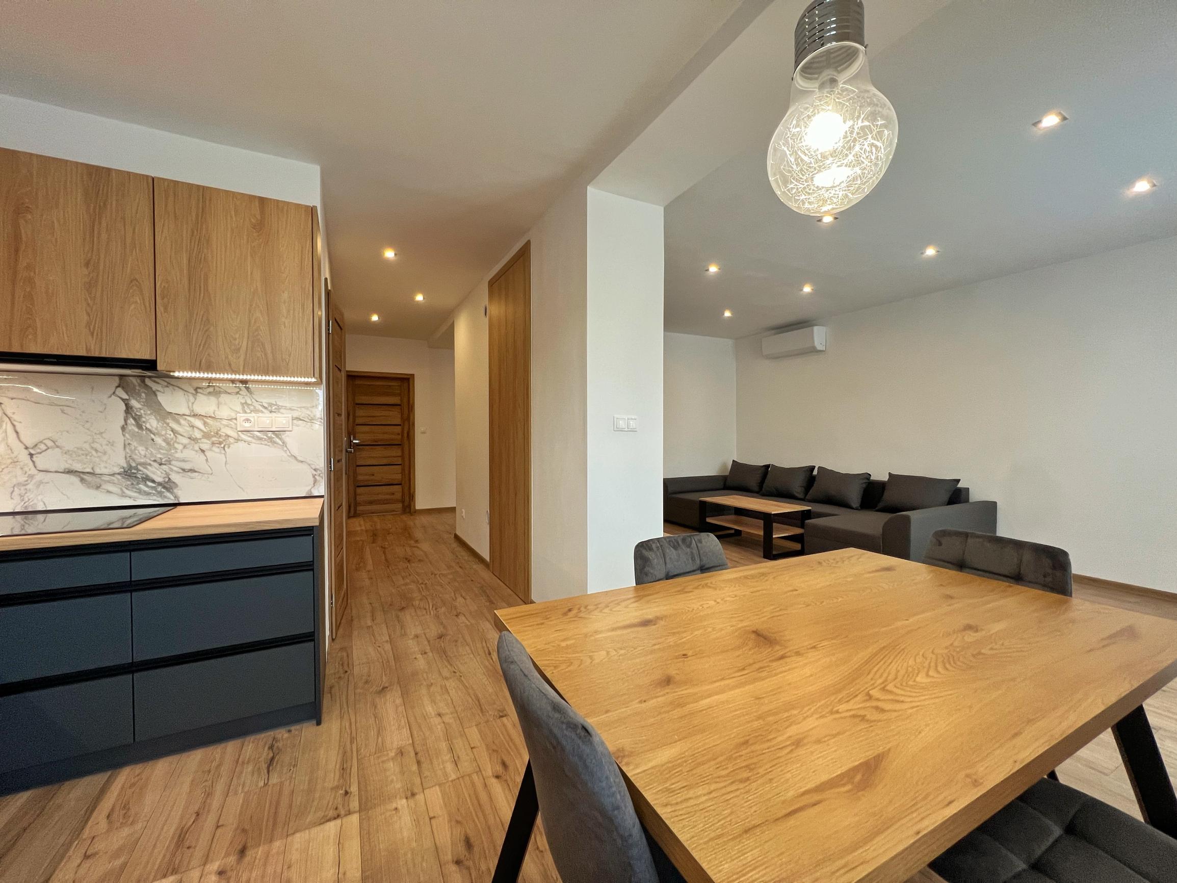 - zariadená obývacia izba s gaučom a televíznou stenou, jedálenský set na sedenie, kuchynská linka so spotrebičmi, dve kompletne zariadené spálne s pohodlnými manželskými posteľami a priestrannými skriňami, skrinka na topánky a kabáty v chodbe, práčka v kúpeľni a vstupné bezpečnostné dvere, klimatizácia v obývačke