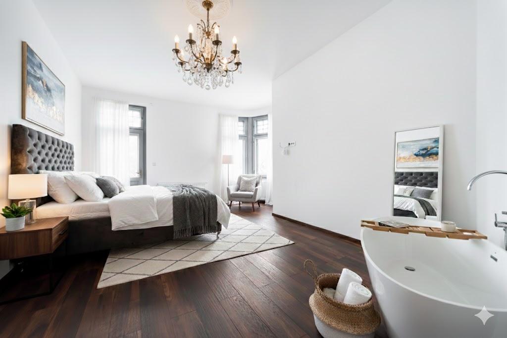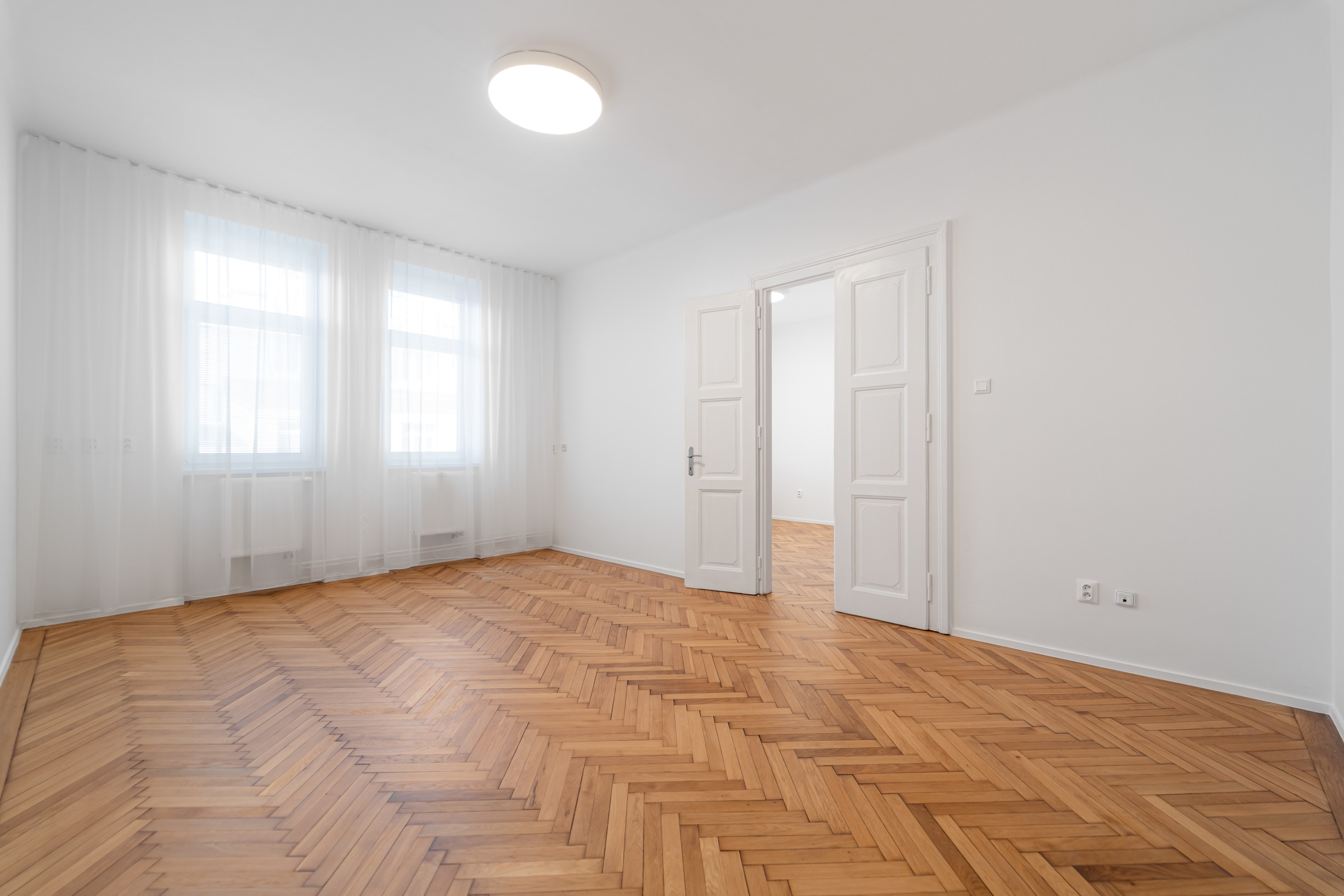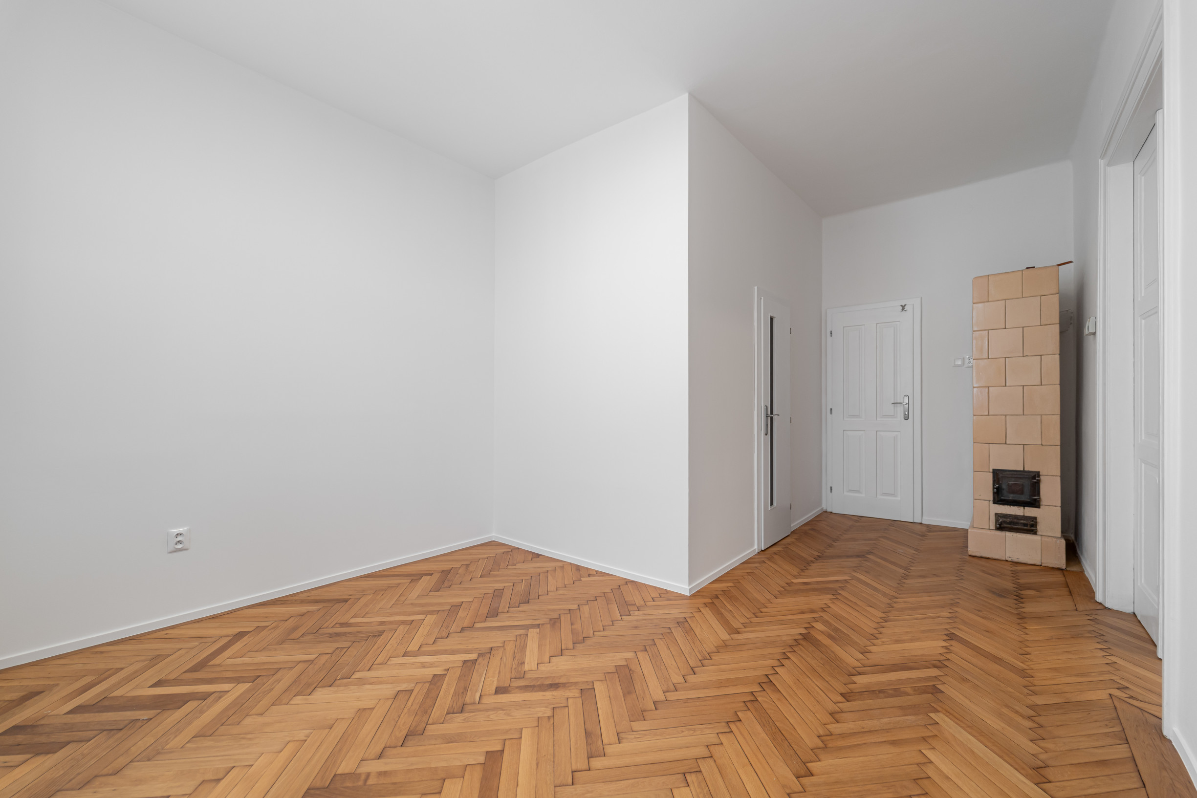 * v obývačke nová drevená podlaha, v izbách zrenomované pôvodné drevené parkety