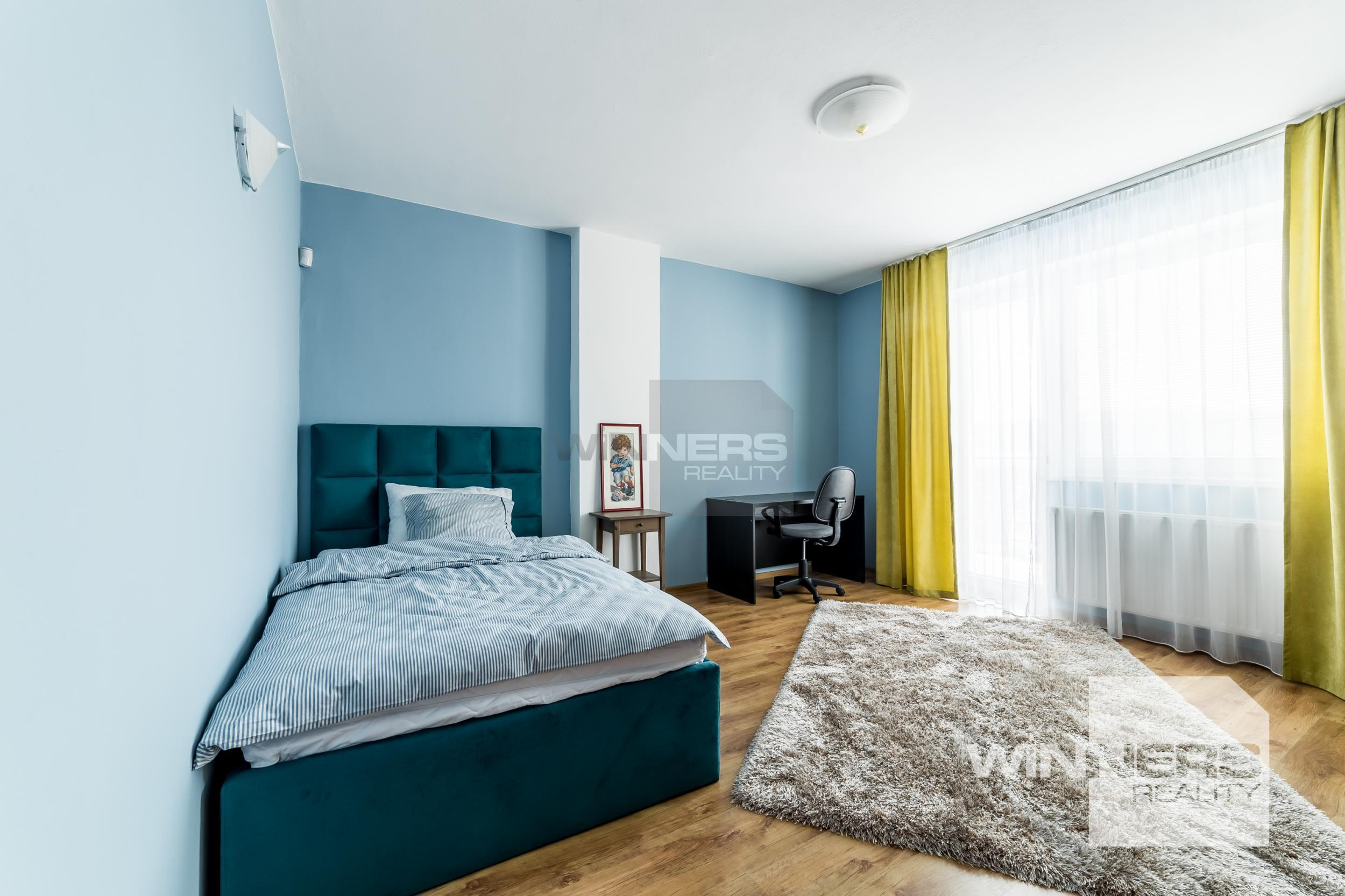 • 2 x detská izba, vybavené posteľou, skriňou, komodou, písacím stolom a stoličkou. Obe izby sú orientované na západ