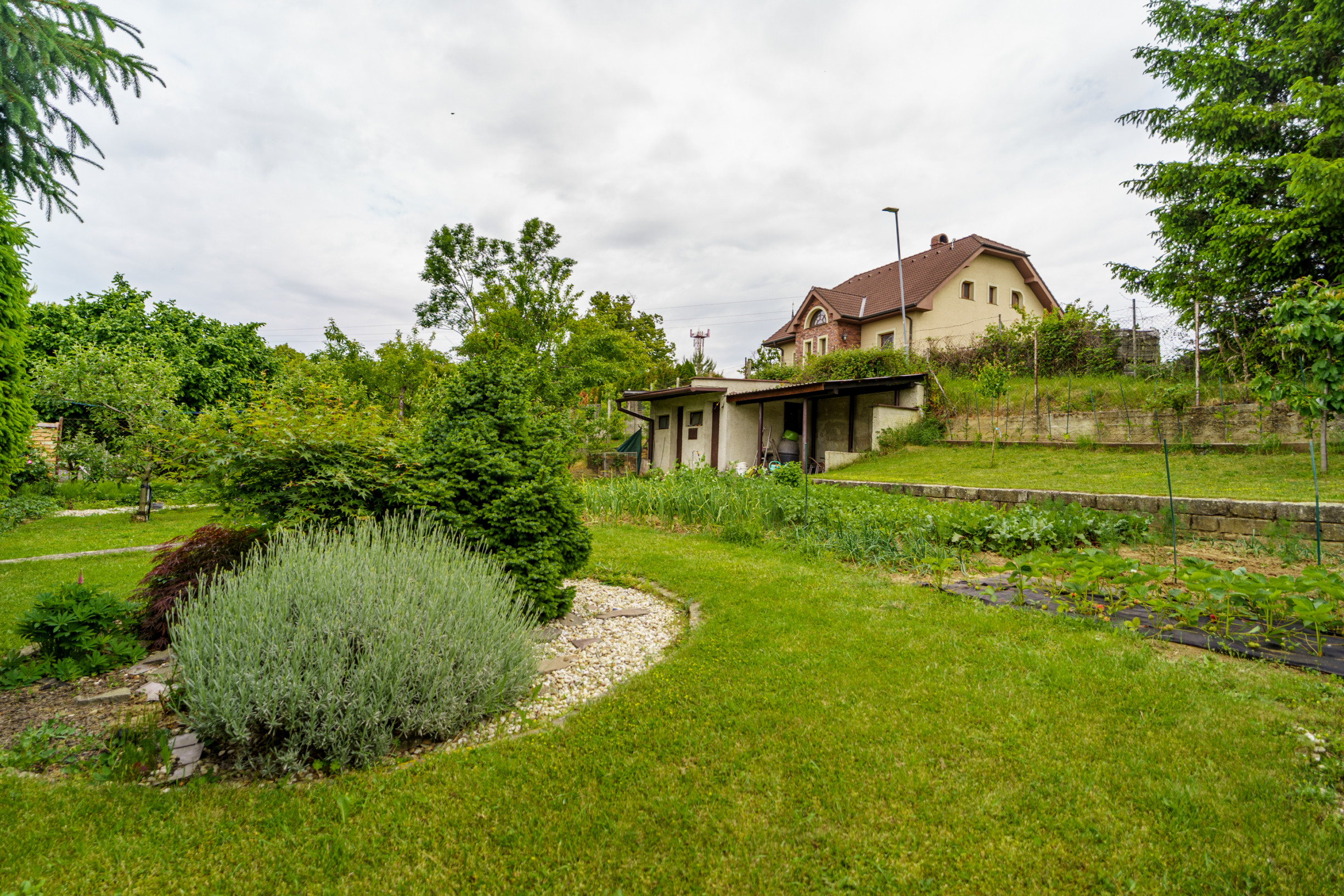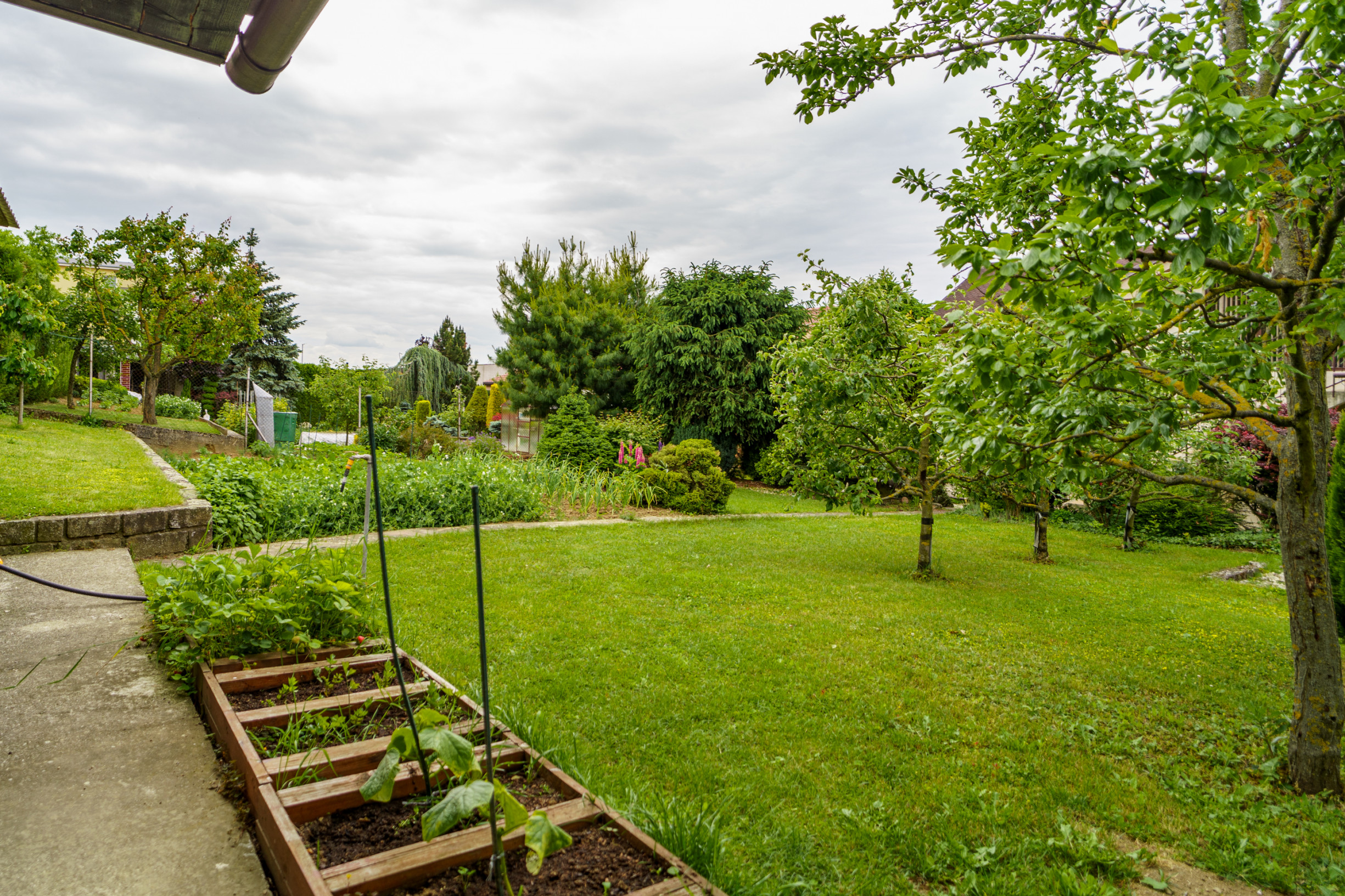+ celý pozemok zdobia okrasné dreviny, s vysadenými ovocnými stromami jabloň, čerešňa, slivka, hruška
