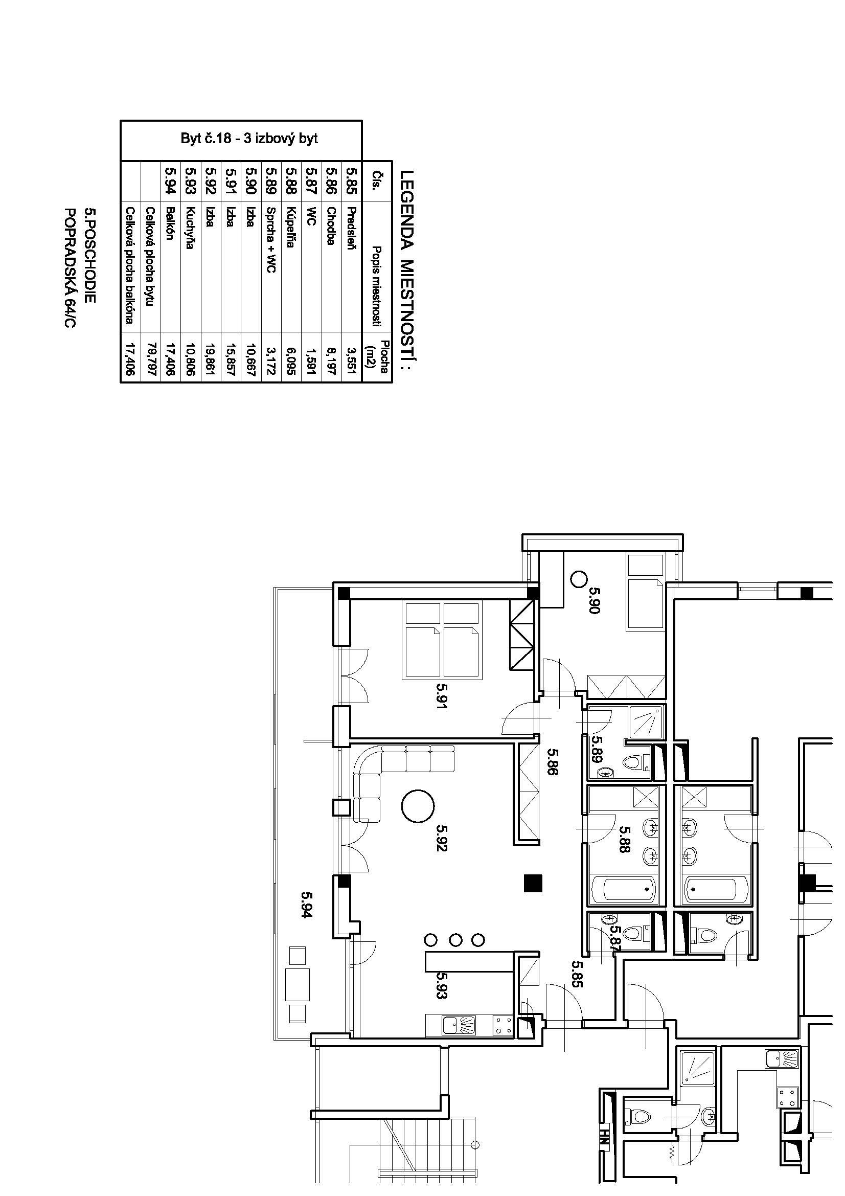Úžitková plocha: byt 80 m2 + terasa 17,4 m2 + pivnica 5 m2