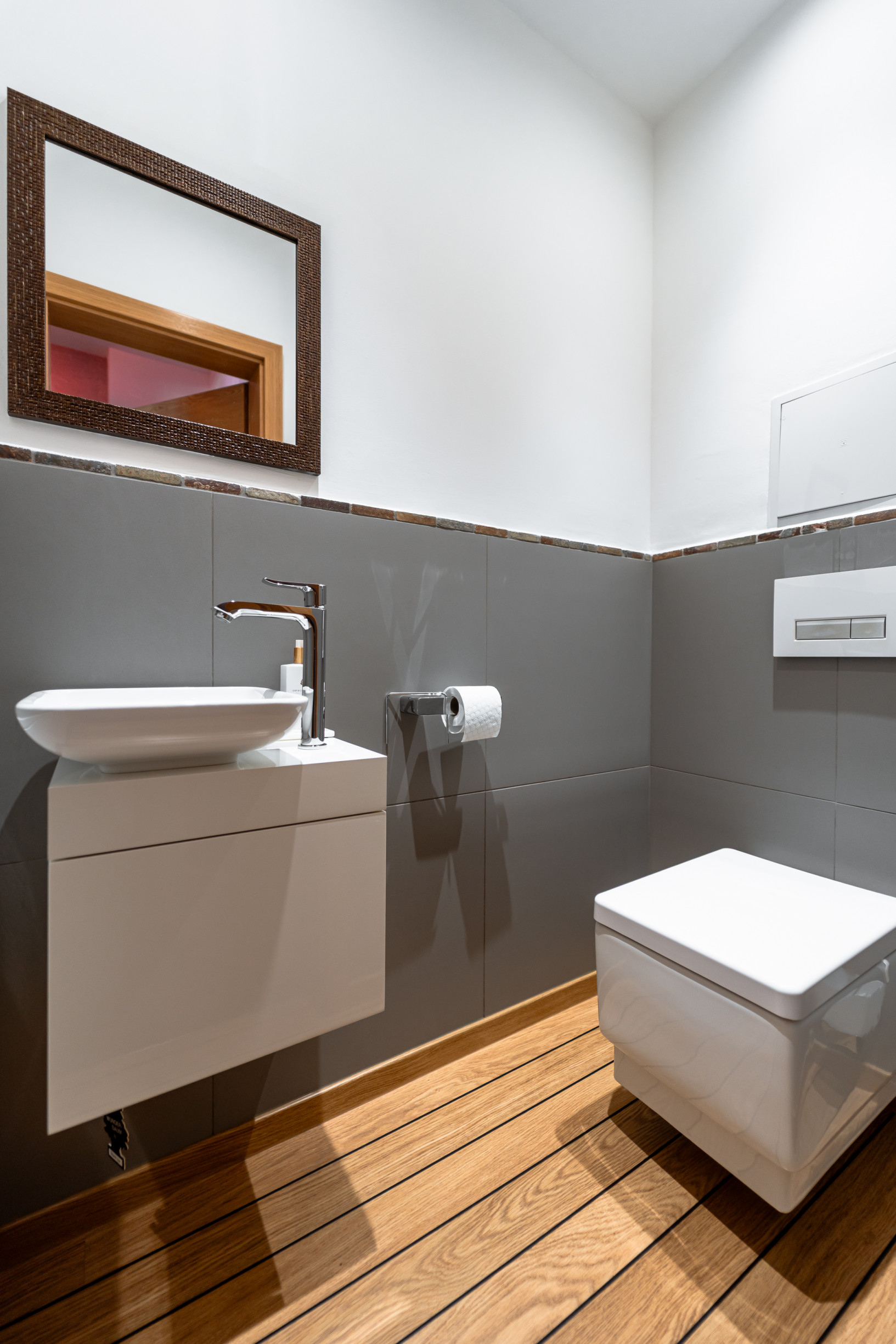 * v kúpeľni je vaňa aj sprchový kút, prírodný kameň s obkladmi