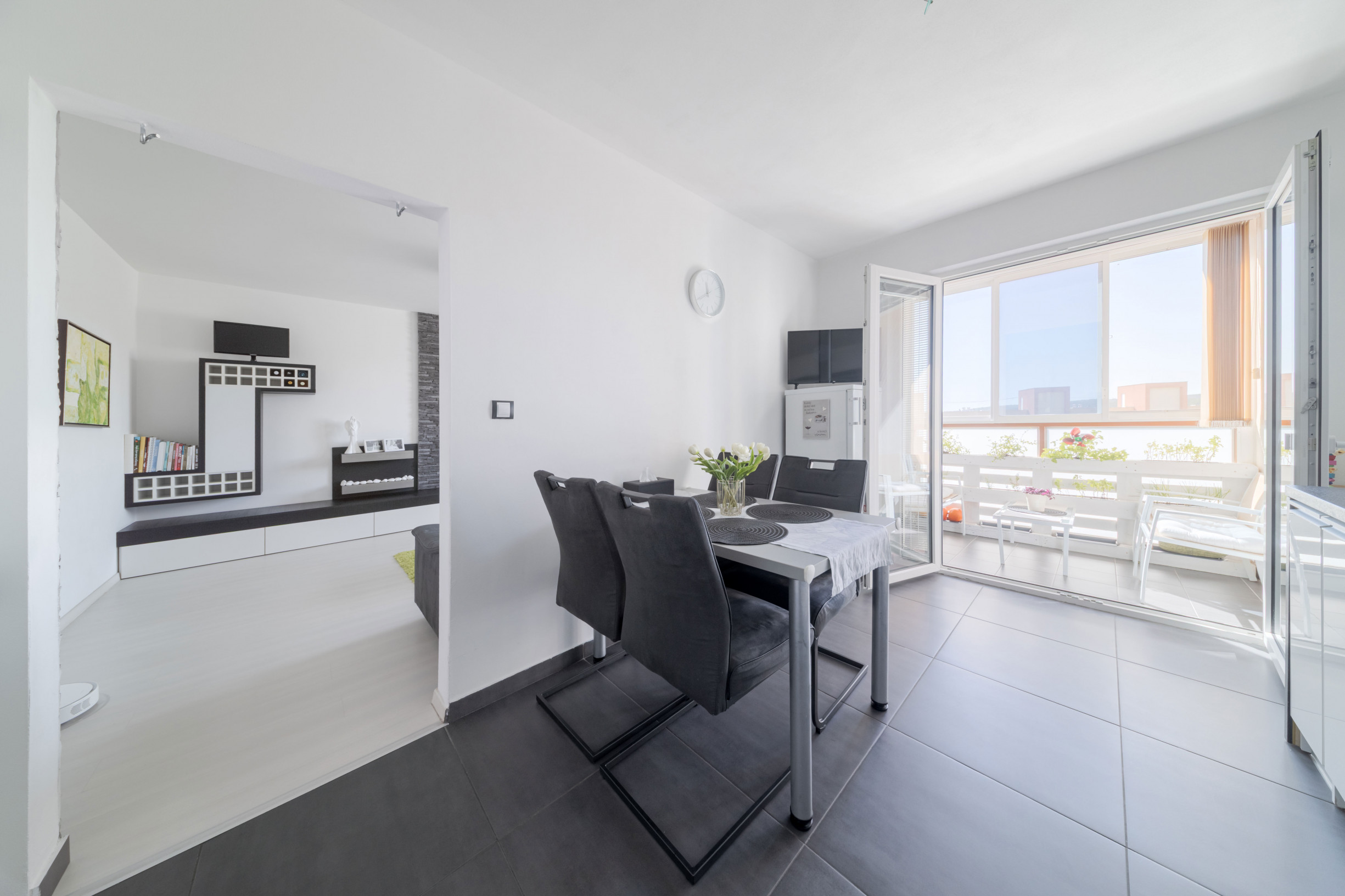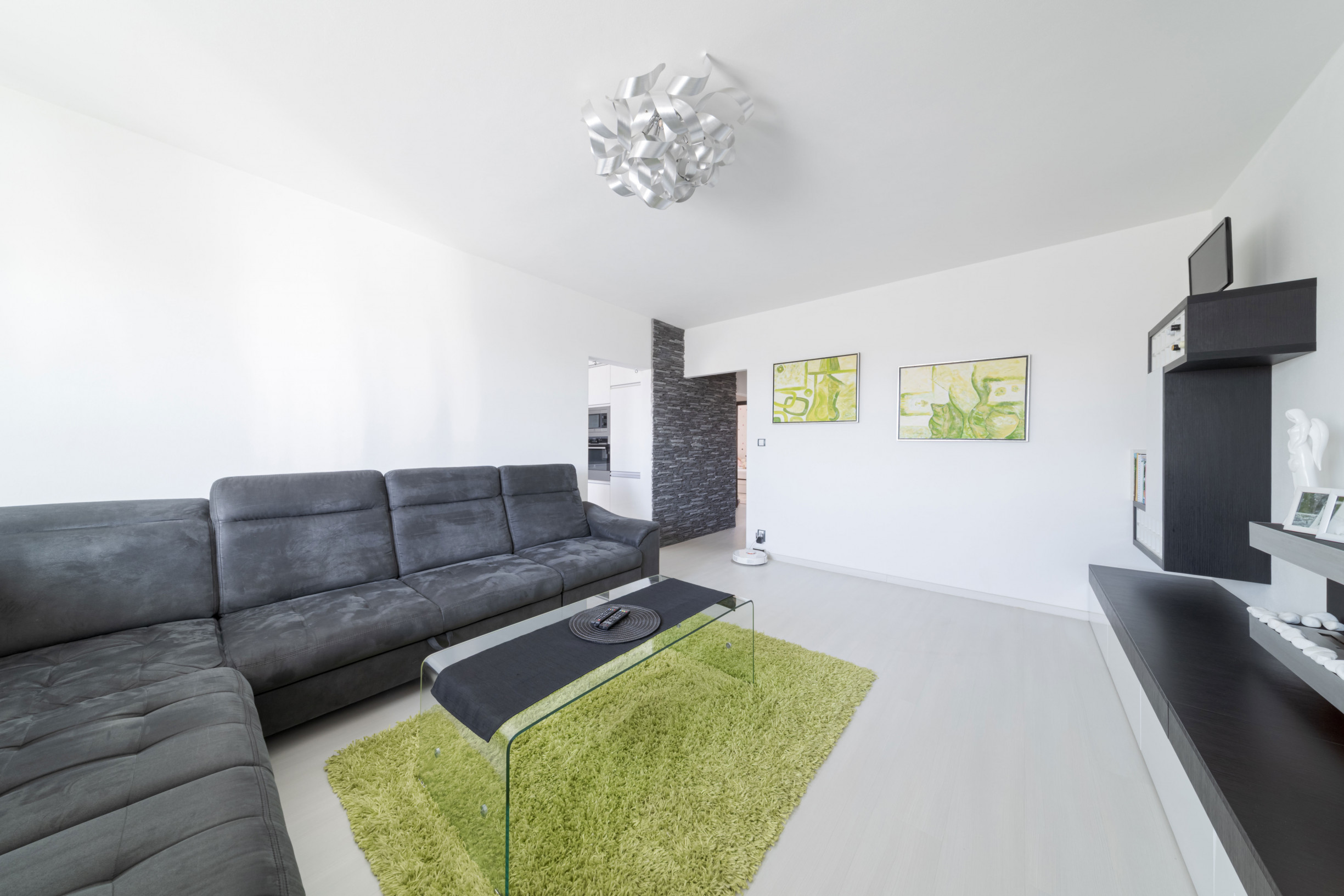 * z chodby sa vstupuje do spálne, detskej izby, kúpeľne, oddelenej toalety a obývacej izby prepojenej s kuchyňou. Vstup na loggiu je z kuchyne