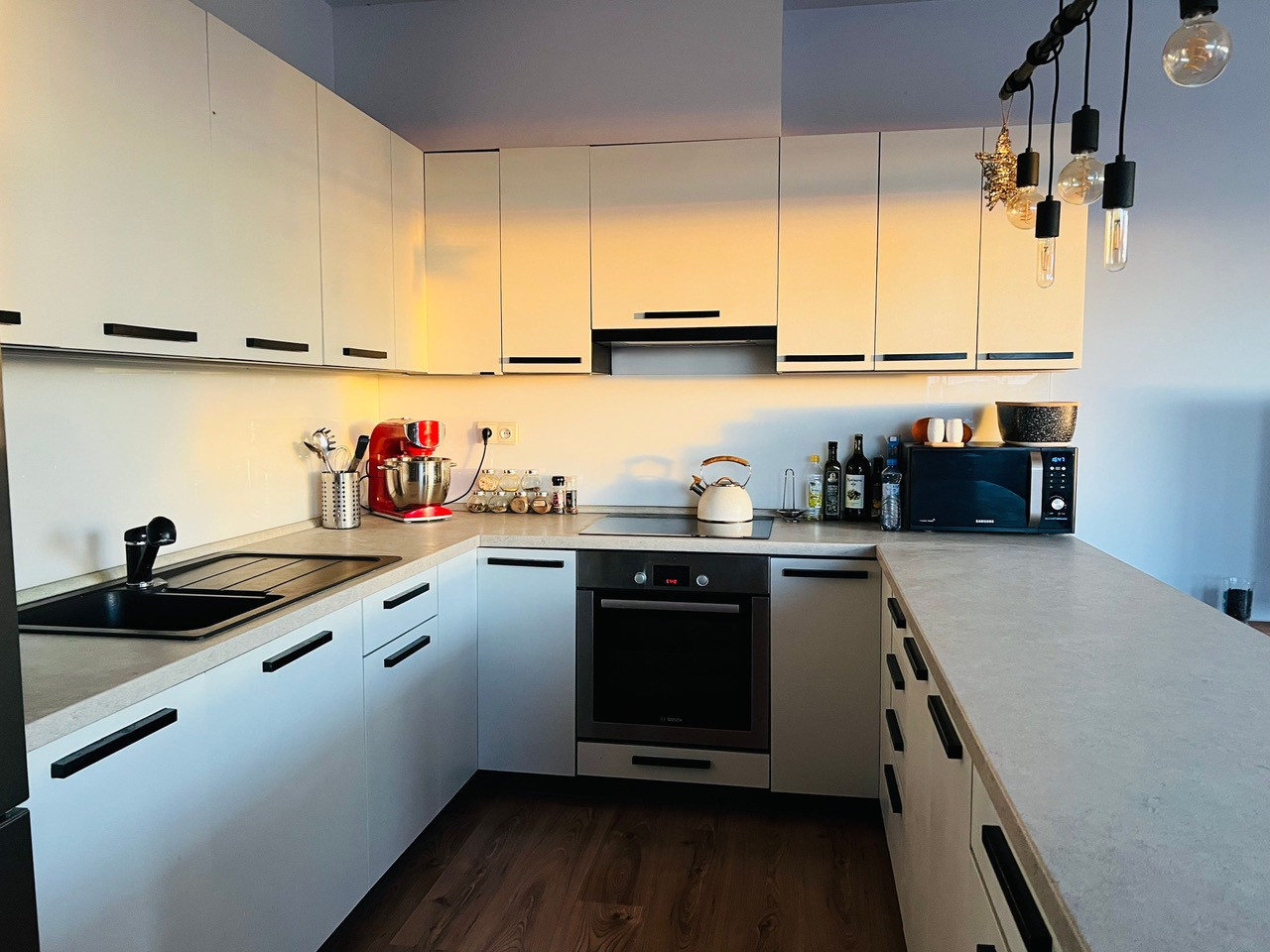 - Kuchyňa - kuchynská linka na mmieru v tvare U so zabudovanými spotrebičmi