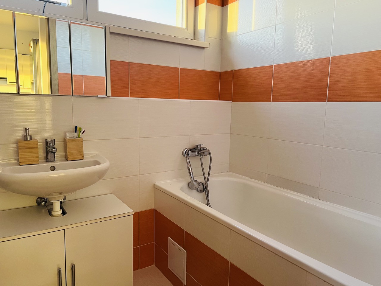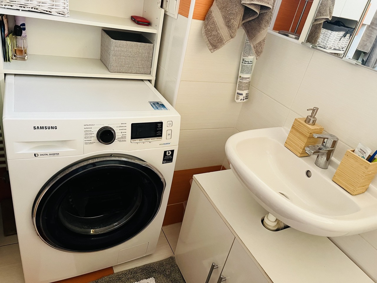- Kúpeľňa - skrinka pod umývadlom, práčka, police nad práčkou