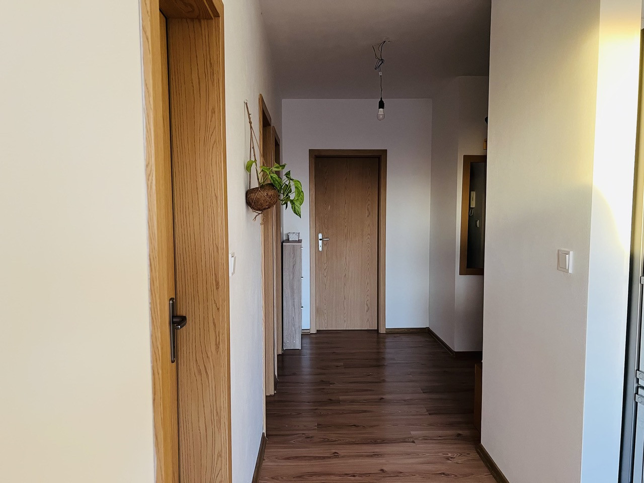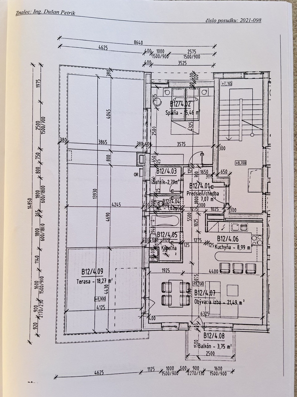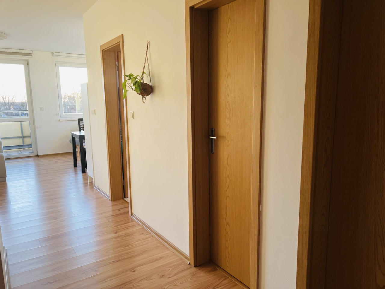 Popis bytu: vstupná chodba, spálňa, komora, WC, kúpeľňa, kuchyňa prepojená s obývačkou, odtiaľ výstup na balkón, jedáleň s výstupom na veľkú terasu