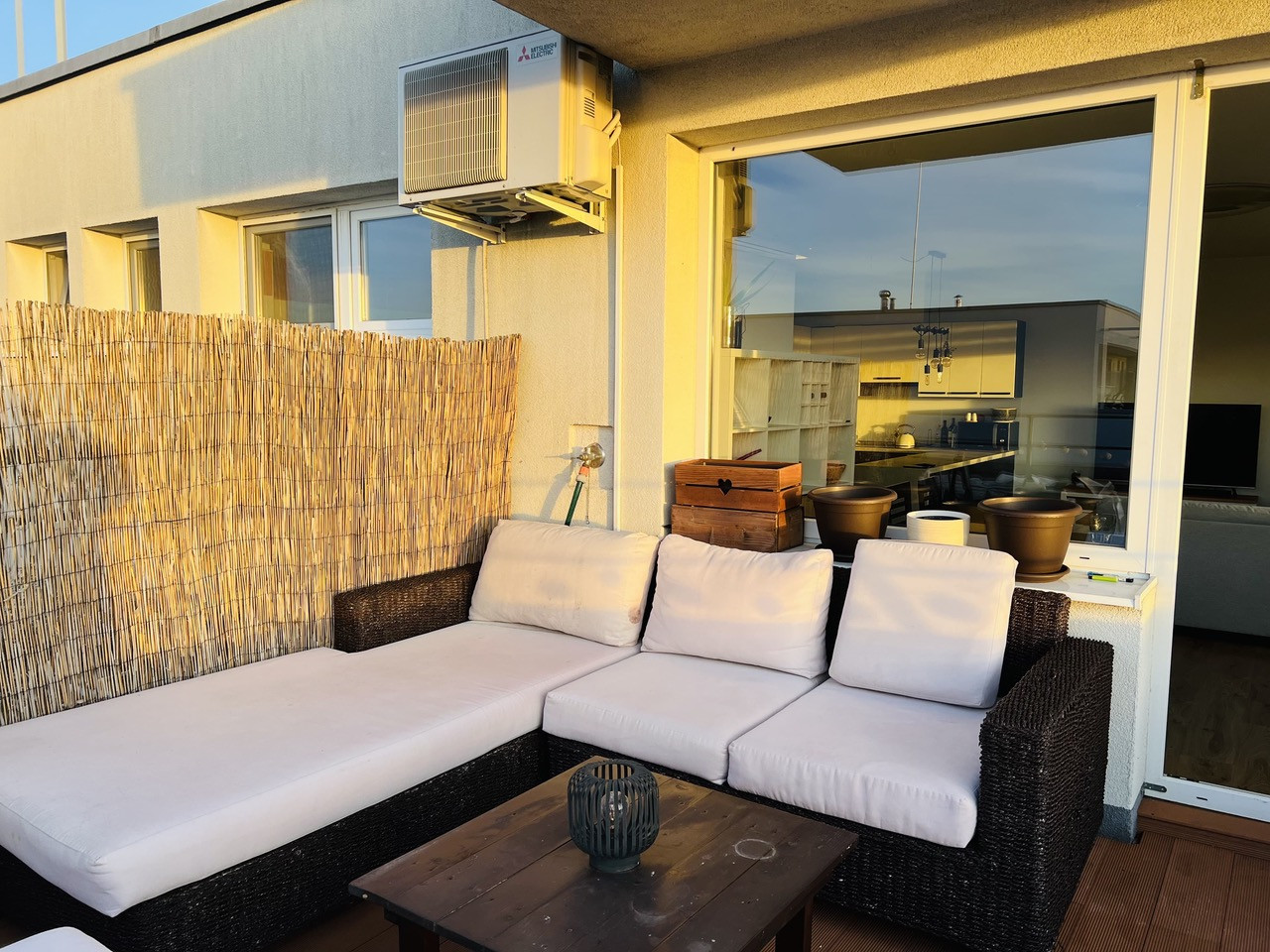 - Terasa - rohová ratanová sedačka s poduškami