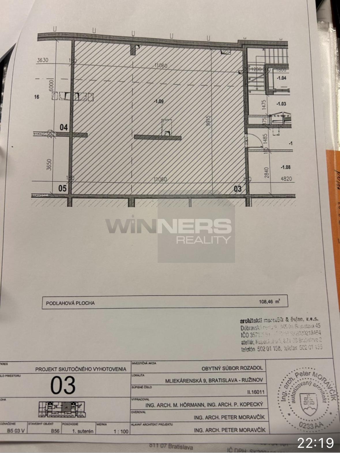 Ponúkame na predaj skladový priestor na -1 podlaží v projekte Rozadol v Ružinove na ul. Mliekarenská. Vstup je zabezpečený cez podzemnú garáž na diaľkové ovládanie.Výmera:108,46m2