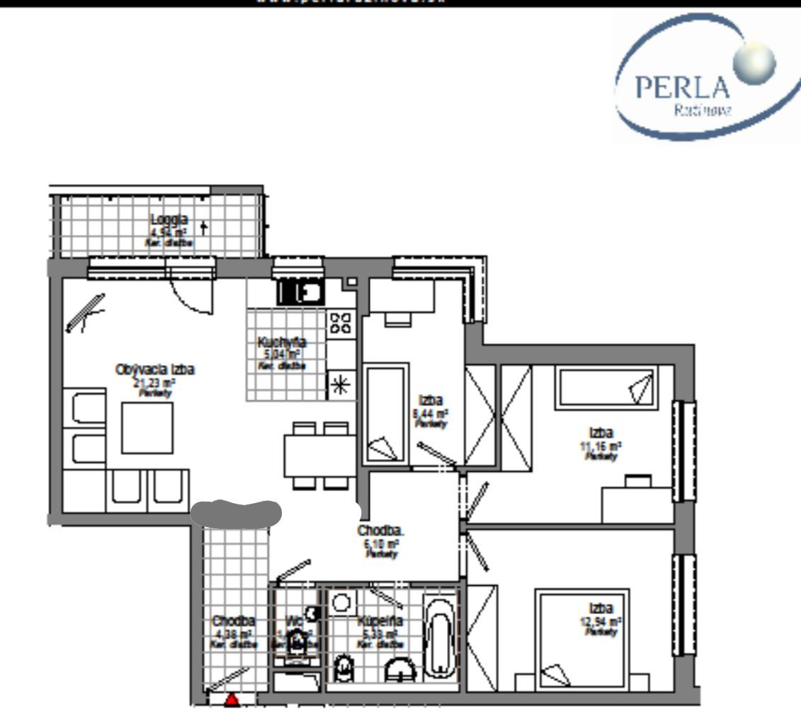 • Dispozícia: 4 izbový byt + loggia