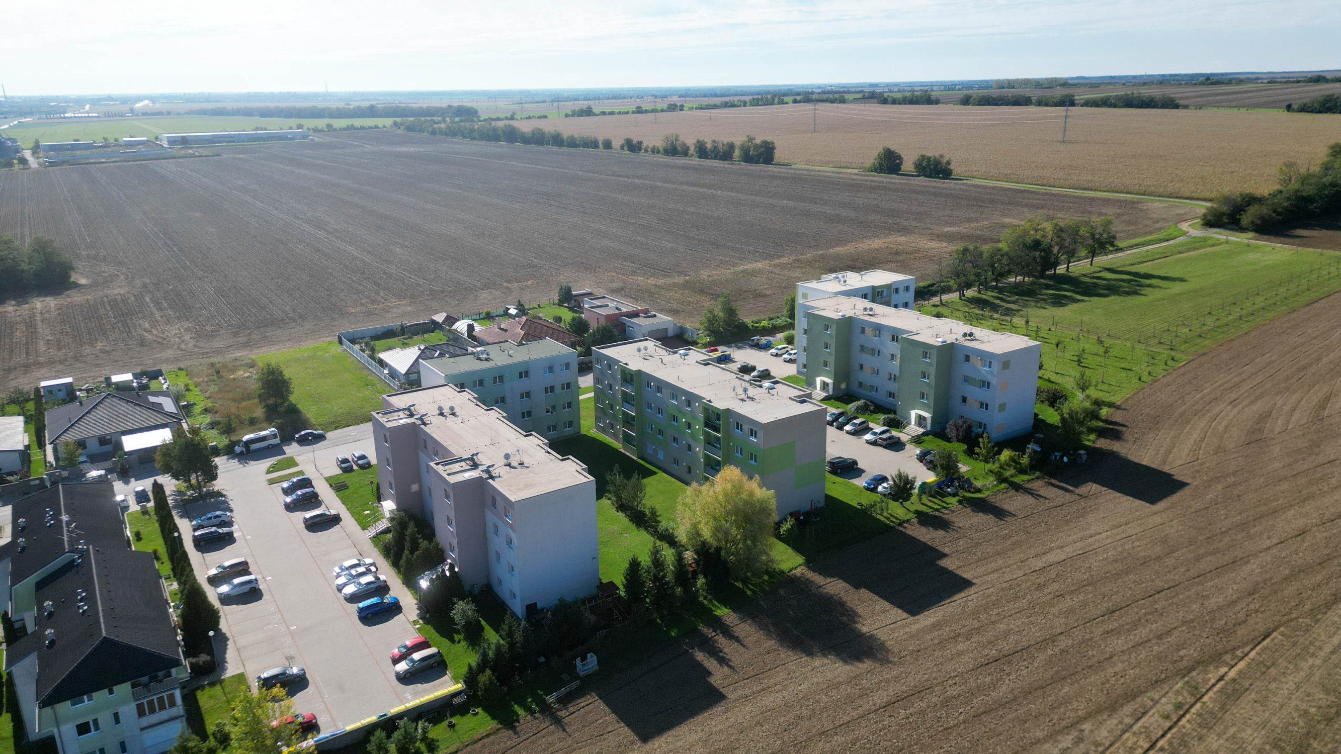 Lokalita je veľkou výhodou – bytový dom je súčasťou novovybudovanej štvrte, ktorá spája kľudné bývanie na okraji obce s možnosťami aktívneho oddychu. Za domom sa rozprestierajú polia a príroda, čo ponúka ideálne podmienky na cyklistiku, turistiku či príjemné prechádzky.