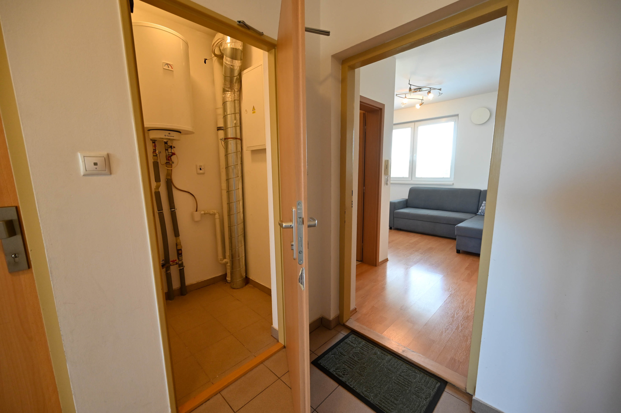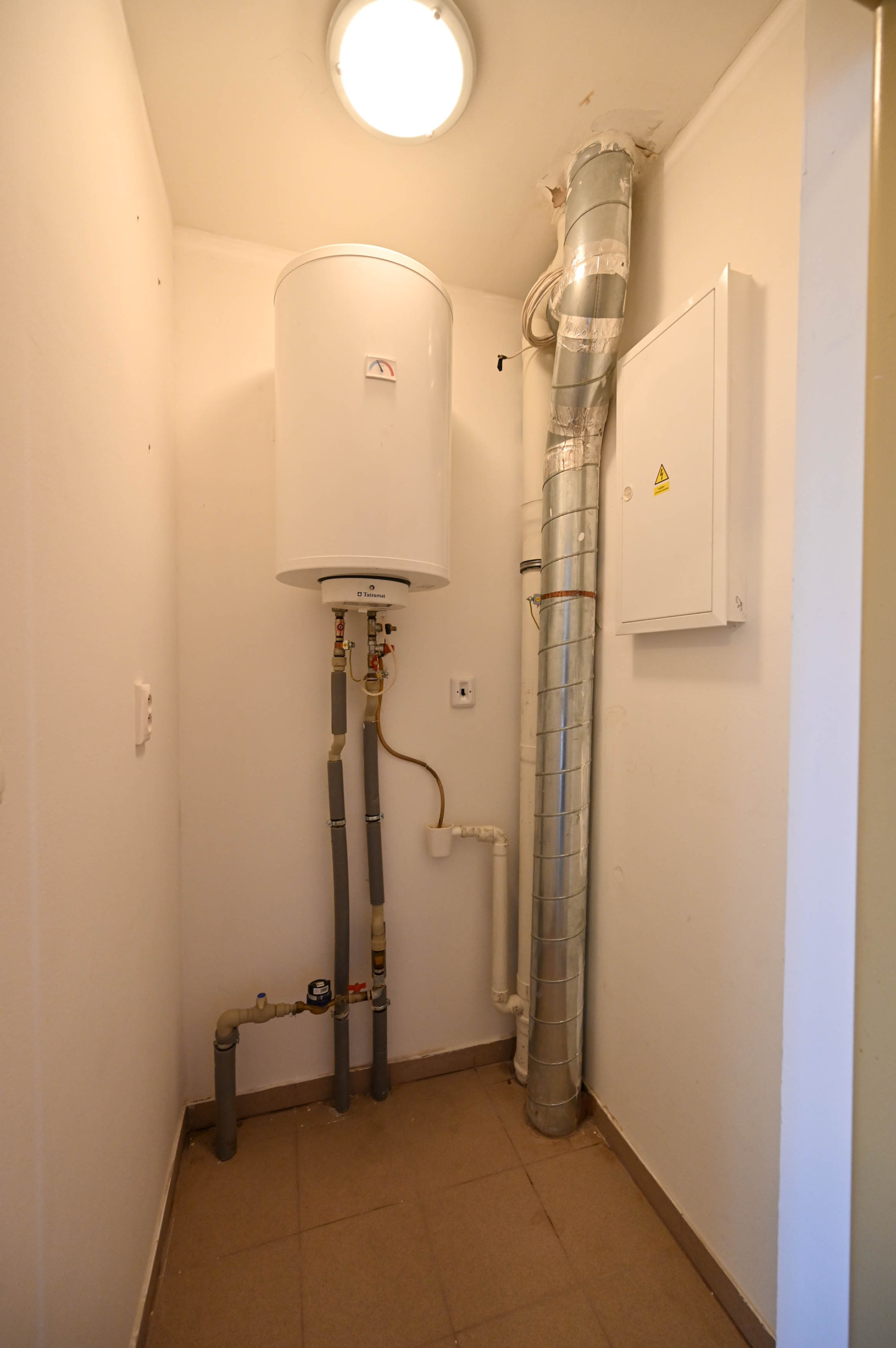K bytu prislúcha aj samostatná miestnosť (kopka) priamo na poschodí hneď vedľa bytu, kde je umiestnený bojler na ohrev teplej vody s vlastným meračom.