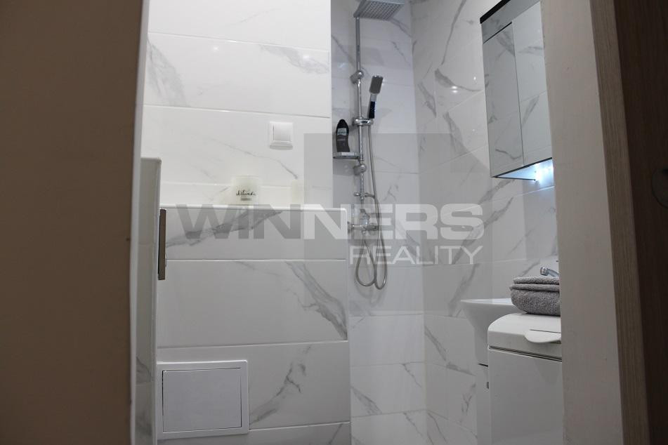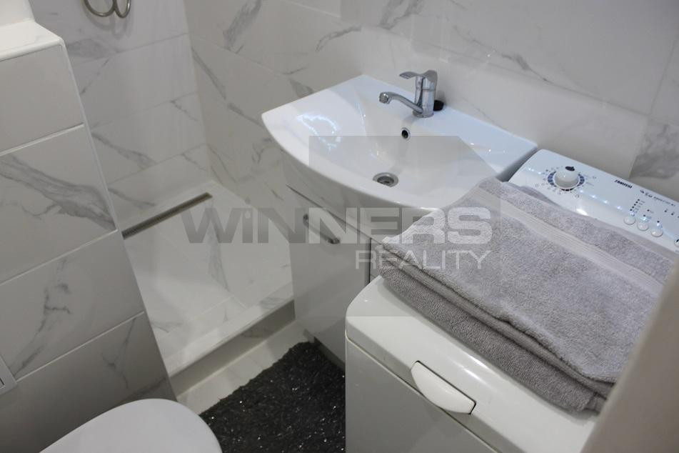 - Vstupná chodba – veľmi vkusná dlažba , posuvnými dverami sa dostanete do elegantnej kúpeľne so sprchovým kútom, automatická práčka