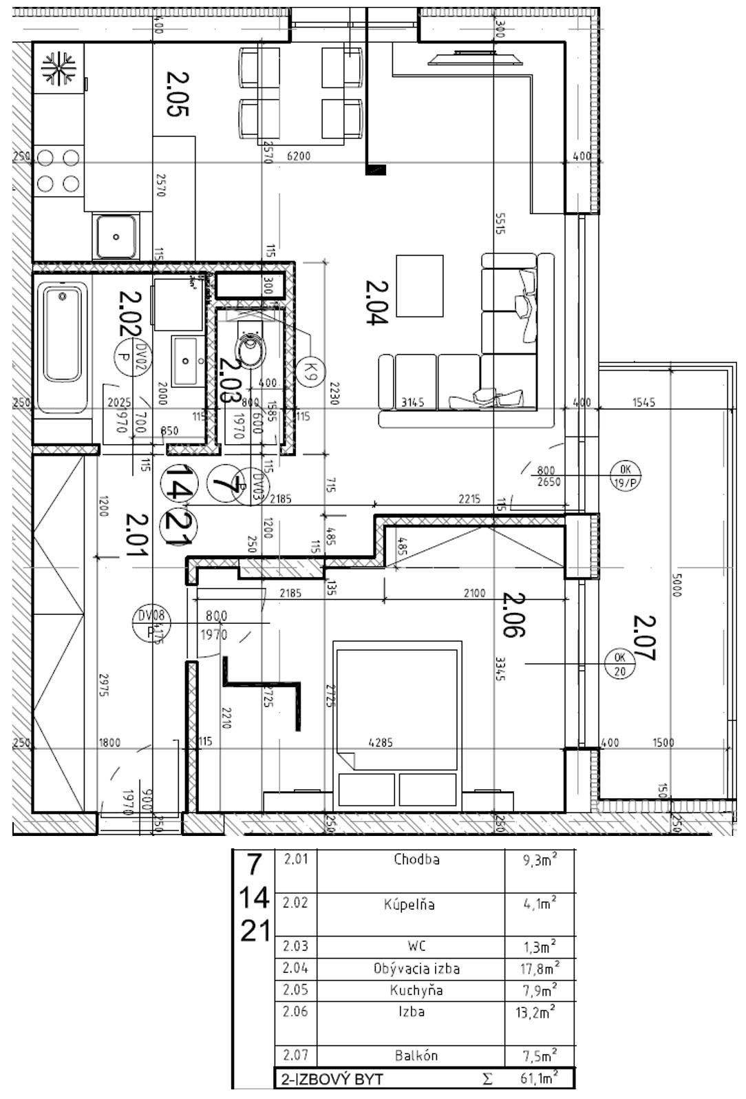 • : 2 izbový byt