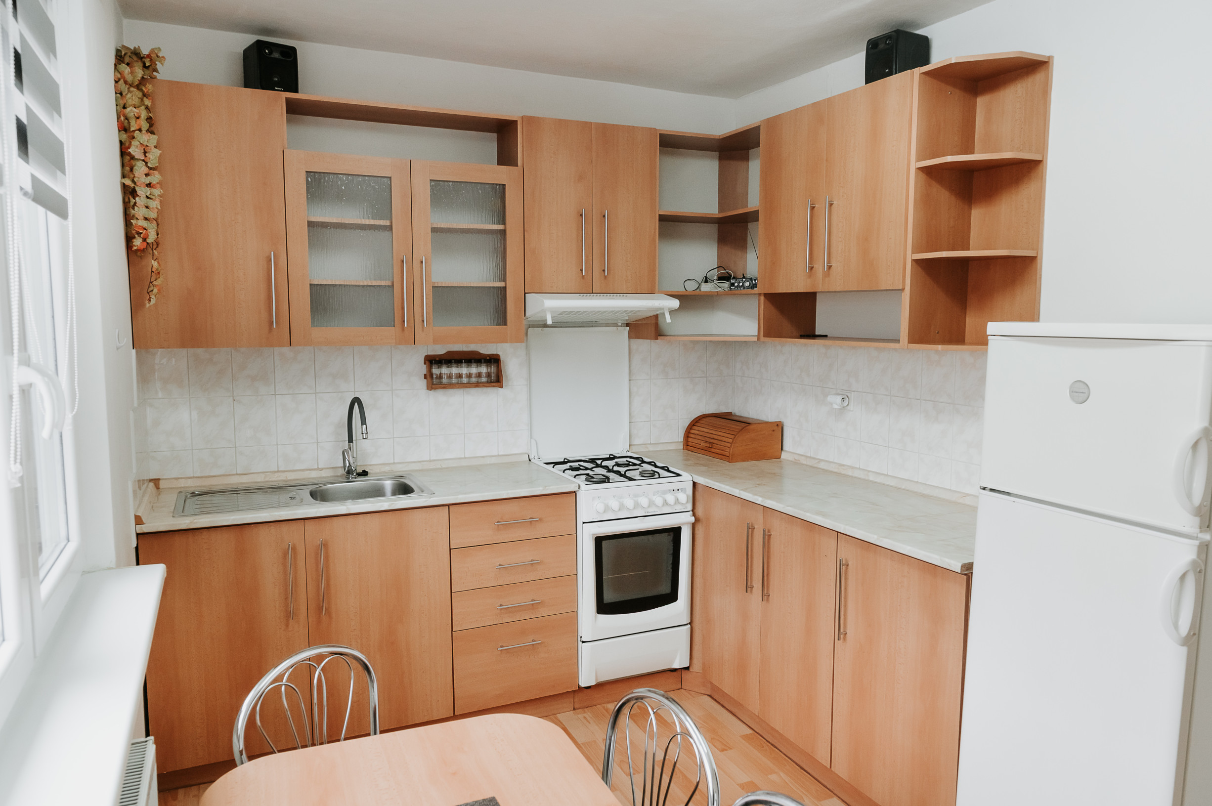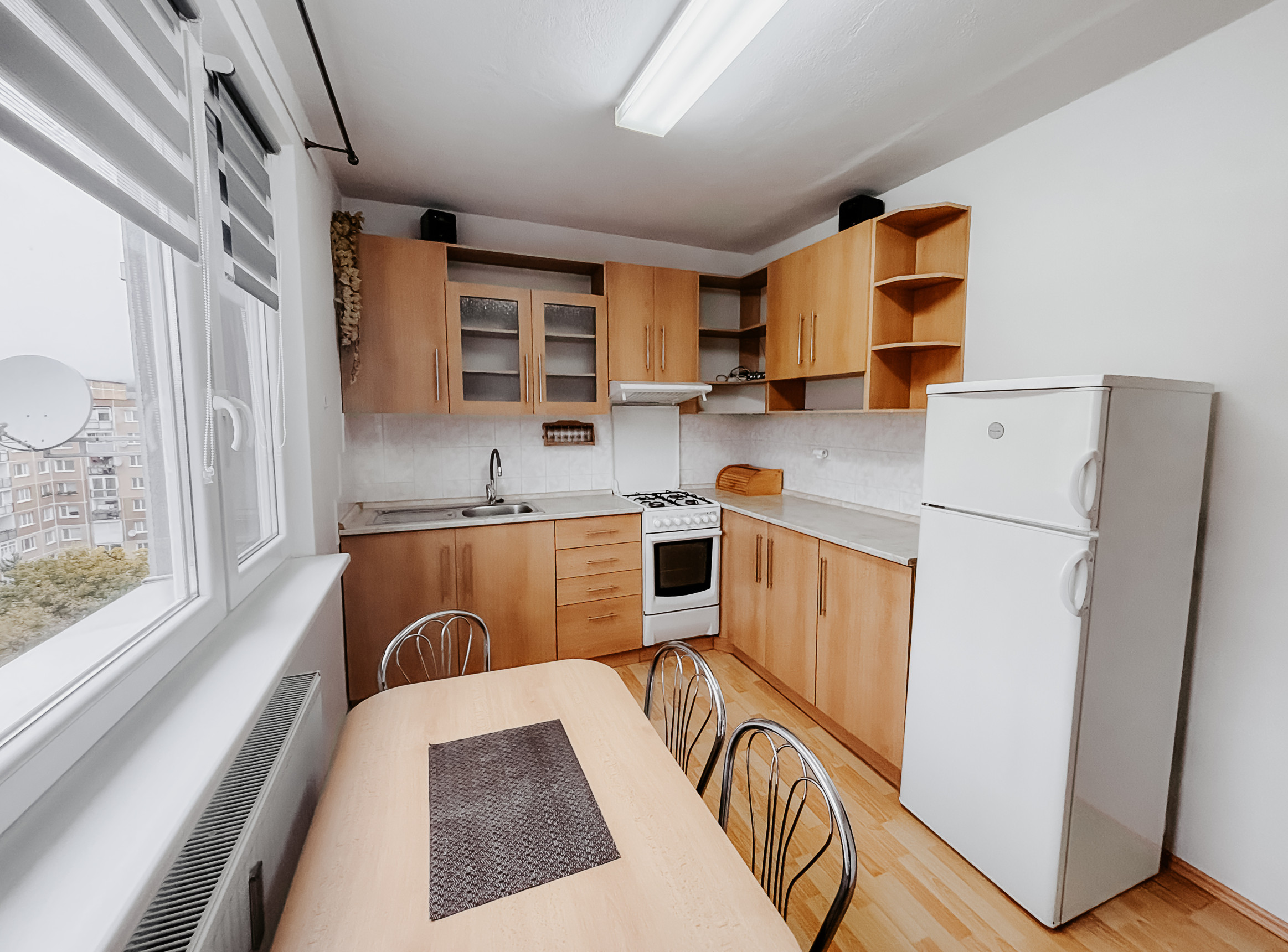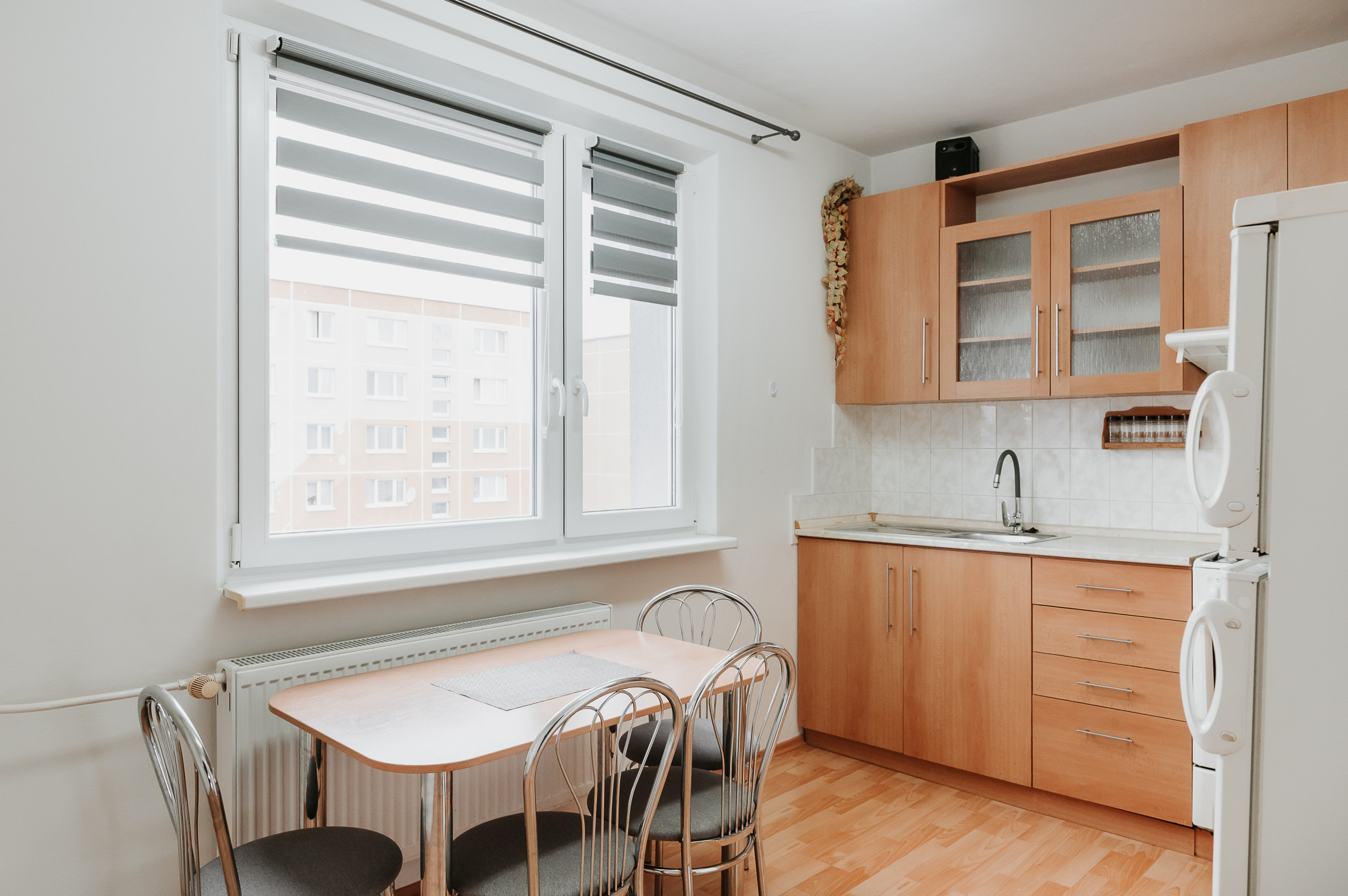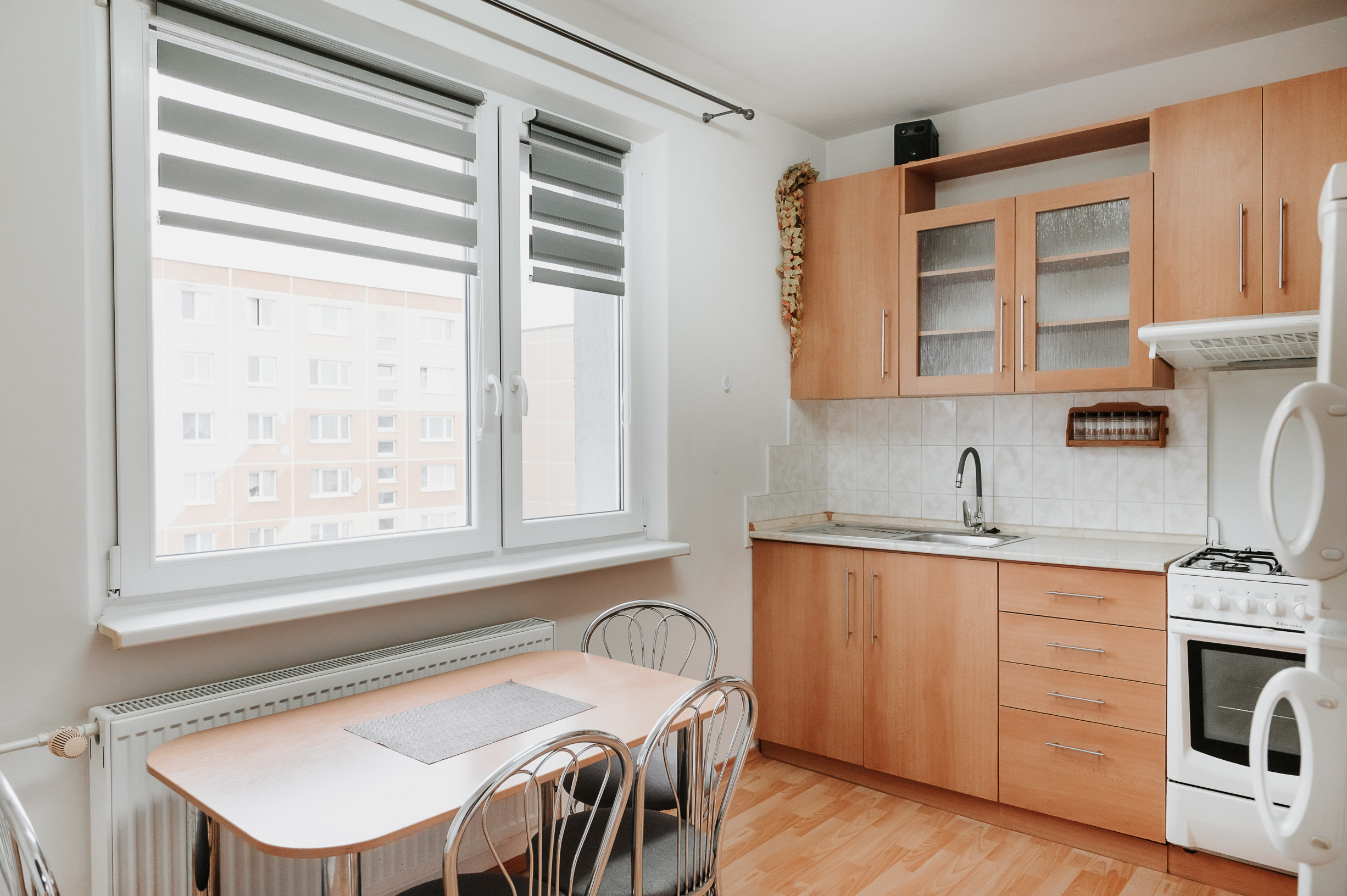 * v byte sú pekné vysoké stropy, plastové okná so žalúziami